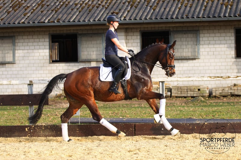 KWPN • Stute • *2019 • ca. 1,72 m ✨ Incognito – Lancet ✨ 💫 Dressurstute mit Herz und Qualität 💫 Diese beeindruckende KWPN-Stute vereint Größe, Eleganz und sportliche Erfahrung. Mit ihren ca. 1,72 m bringt sie viel Rahmen, Präsenz und eine tolle Ausstrahlung mit – ein Pferd, das sofort ins Auge fällt. Abstammend von Incognito aus einer Lancet-Mutter überzeugt sie nicht nur durch ihre interessante Abstammung, sondern auch durch ihre Leistungsbereitschaft und Qualität unter dem Sattel. Bereits mehrfach in L-Dressuren in den Niederlanden platziert, zeigt sie sich motiviert, lernwillig und mit viel Freude an der Arbeit. Mit der Wechselarbeit wurde bisher noch nicht begonnen, sodass weiterhin viel Entwicklungspotenzial vorhanden ist. Hier lohnt sich die weitere Förderung. Besonders hervorzuheben ist ihr Charakter: Diese Stute hat ein Herz aus Gold und ist im täglichen Umgang ein großer Schatz. Sie präsentiert sich sehr unerschrocken, kopfklar und unkompliziert, was sie zu einer äußerst angenehmen Partnerin im Alltag macht. 🩺 Ein sehr guter Röntgen-TÜV liegt bereits vor. Eine tolle Partnerin für Reiter, die Sport, Qualität und einen besonderen Charakter zu schätzen wissen. 📍 Standort: Rotenburg/Wümme 📞 Weitere Informationen gerne unter: +49 173 3013499