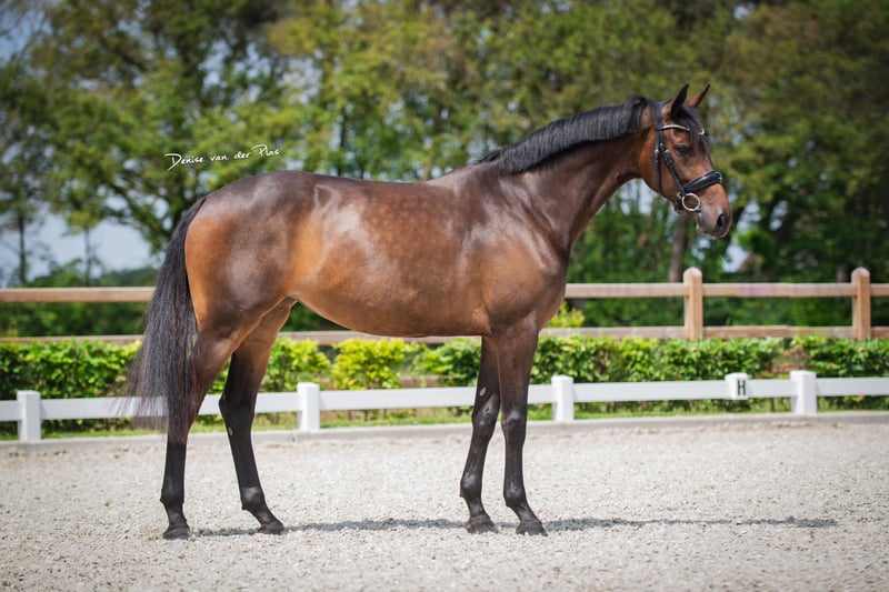 New Style is een 8 jarige chique elitemerrie uit een zeer goede sportstam. New Style is dressuur M geklasseerd en heeft vrijwel alle wedstrijden gewonnen. Ze heeft nog niet lager dan 68% gescoord. Ze is helemaal rontgenolgisch gezond en heeft geen (stal) gebreken. Foto’s incl rug en hals zijn beschikbaar. New Style is een aanhankelijke en sensitieve merrie. Ze is gemakkelijk in de omgang. Ze is licht te rijden en heeft veel souplesse en looplust. Ze heeft veel aanleg voor dressuur maar vindt buiten rijden, cross en springen ook heel leuk. New Style is niet bang en houdt van afwisseling. Ze is uitermate geschikt voor een ruiter die houdt van een sensitief en intelligent paard met ‘go’. Ze komt rechtstreeks van de fokker. Ze was als veulen kampioen en heeft op het NK meegedaan. (NMK veulen). Haar familie waarvan oa grootmoeder Vienna D zijn hier te bekijken. Ze is interessant voor sport en fokkerij. Er komen verschillende LT en GP paarden uit de moederlijn. New Style heeft twee prachtige nakomelingen. Op de keuring had New Style 80 punten voor beweging en 80 punten voor exterieur. New Style: Incognito x Ampere x Jazz (Vienna D) Voor meer informatie over de sportstam van New Style zie onze facebookpagina ‘DALMHORSES'’