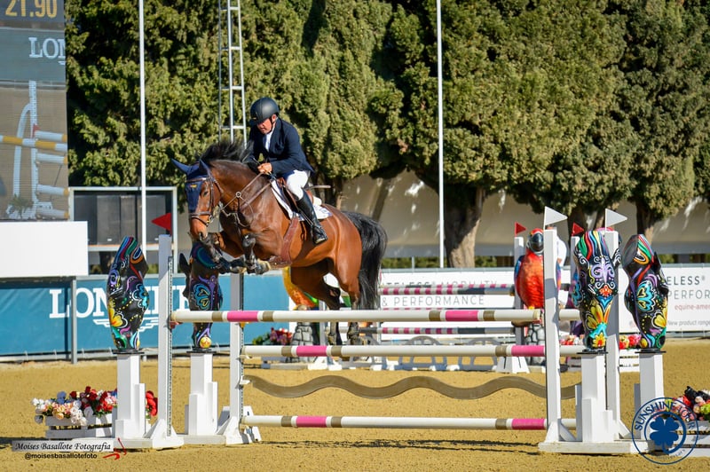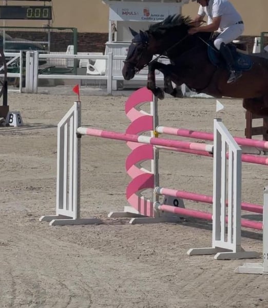 Cavalla di 8 anni, figlia di Douglas (cavallo di 150 cm) da madre di 145 cm. Ha completato tutti i cicli di giovani cavalli al Sunshine Tour Montemedio, con classificazioni nei campionati di Spagna per i 5, 6 e 7 anni, arrivando al campionato nazionale dei 5 anni. Molto bella e ben conformation. Nessun problema con la tosatura, ferratura, veterinario o camminatore; gestibile con tutti i tipi di maneggio. Molto tranquilla anche per passeggiate in campagna. Carattere 10/10 in arena. Adatta sia a dilettanti che a professionisti. Dispongo di lastre di gennaio 2026 approvate dai veterinari. Vendita rapida a causa di saturazione del box.