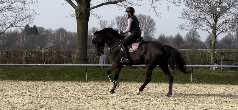 Ik verkoop mijn 8-jarige, ongeveer 1,65 m grote, zwartbruine merrie van Il est Balou x Olivi. Niki is ongeveer 3,5 jaar geleden bij mij gekomen en ik heb haar gereden en opgeleid. Ze heeft plezier in de dagelijkse training en rijdt ook prettig dressuurmatig, met enkele piaffe- en zijgangen onder de knie. Ik heb haar voorgesteld in springklassen A en L tot L-springen. Eind vorig jaar was ze succesvol in een A**-springen en geplaatst in L-springen voor jonge springpaarden. Ze kan zowel in het bos alleen als in een groep gereden worden – ook als allrounder zeer geschikt. Vanwege de geboorte van mijn kind zoek ik een 5-sterren thuis, bij voorkeur bij iemand met ervaring, omdat ik haar niet meer volledig kan bieden wat ze verdient. Ik zoek iemand die haar karakter en haar hart van goud waardeert. Ze is van nature vrij onderdanig en kan zowel met merries als met hengsten buiten staan. Regelmatig gevaccineerd, met tandarts, hoefsmid en fysiotherapeut verzorgd. Niki had bij aankoop al een gezondheidsverklaring, die haar tot nu toe geen problemen heeft opgeleverd, daarom wordt ze onder de marktwaarde aangeboden. Röntgenfoto’s uit 2022 en 2024 zijn beschikbaar; een nieuwe keuring kan op eigen kosten worden gedaan. Gelieve geen vragen over beschikbaarheid of betaling in termijnen – dat is voor mij geen optie! Bij serieuze interesse hoor ik graag via telefoon op 0178/9178942 en ik geef graag meer informatie. Voor een proefritten wordt €30 gevraagd, wat bij de aankoop uiteraard wordt verrekend.