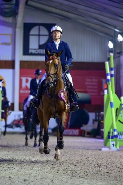 She is a very comfortable and forgiving ride, with a calm mind, good balance, and natural scope. Her brave attitude and easy character make her an ideal partner for junior or amateur riders aiming for 1.30–1.40 m classes, while still having the quality expected from a competitive sport horse.