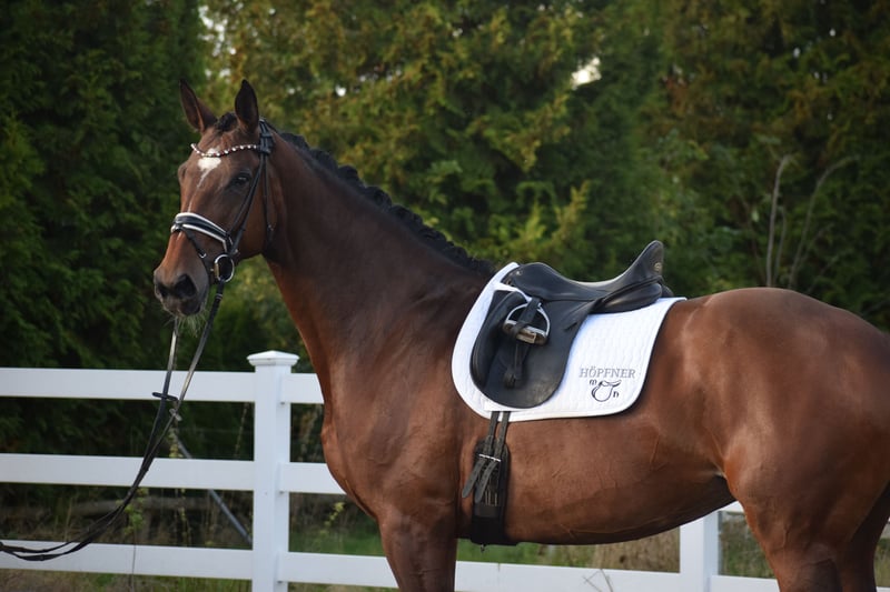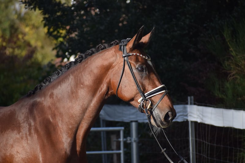 ÉTONNANTE JUMENT DE DRESSAGE, LÉGÈRE À MONTAR, AUX MULTIPLES TYPOS ET ALLURES, IMPOSANTEMENT CAPTIVANTE DANS LE GRAND CARRE, PARFAITE POUR LES JEUNES CAVALIERS ! À MONTER IMMEDIATEMENT ! Nous proposons à la vente, en représentation du propriétaire, cette jument talentueuse de 9 ans, baie, mesurant 1,76 m, de race KWPN, de première qualité, issue d’un sang de performance ZONIK x JOHNSON. "LIV" procure un plaisir constant dans la manipulation et le travail quotidien. Son apparence ne laisse pas indifférent, avec un visage typé, une silhouette harmonieuse et un profil latéral vraiment superbe. "LIV" est arrivée chez son actuel propriétaire, un cavalier de Grand Prix, il y a 6 mois. Depuis, elle est sous sa garde. Elle a toujours été montée de manière professionnelle à la maison. Grâce à ses origines modernes, sa construction harmonieuse, son bon tempérament, son inscription en stud-book Oldenburg catégorie 1, et le manque de temps du propriétaire, elle a été utilisée deux ans en élevage, donnant naissance à deux poulains très réussis. Elle est aujourd’hui de nouveau en entraînement. Le fait qu’à 9 ans, avec deux poulains, elle maîtrise déjà toutes les leçons M**, ainsi que la majorité des leçons PSG et INTER I, témoigne de son haut niveau de dressage, de sa volonté de performer et de son potentiel d’apprentissage. Lorsque "LIV" se met en mouvement, il devient évident qu’il s’agit d’une athlète motivée, appréciant la grande allure. Sous la selle, elle impressionne par sa silhouette latérale remarquable, sa bonne attitude et sa posture naturelle. Elle développe ses allures puissantes en étant bien engagée, avec beaucoup d’élasticité, de liberté d’épaule et une arrière-main très bien engagée. Sa finesse dans l’incurvation et sa bonne activité du dos facilitent l’utilisation des aides par le cavalier. Si vous cherchez un cheval avec de grandes perspectives, mais aussi une véritable AMIE POUR LA VIE, prête à tout pour le plaisir, "LIV" est la choix idéal. Que ce soit en manège, en carrière ou en extérieur, monter "LIV" est une source de pur plaisir. Grâce à sa grande coopération, sa facilité de monte et son caractère sincère, elle convient également aux jeunes cavaliers et aux juniors. Une occasion unique d’acquérir un cheval exceptionnel. Après l’achat, "LIV" peut également rester en notre pension professionnelle pour continuer son entraînement ou participer à des compétitions. Un certificat vétérinaire récent, comprenant un examen clinique, radiologique (standard, dos et cou), attestant de sa santé sportive, est disponible.