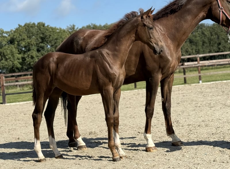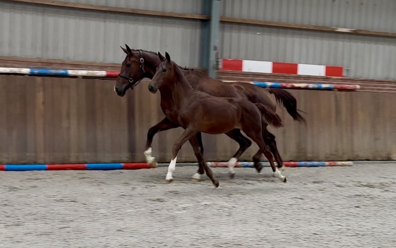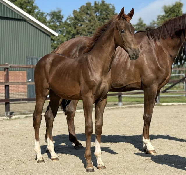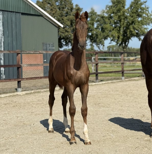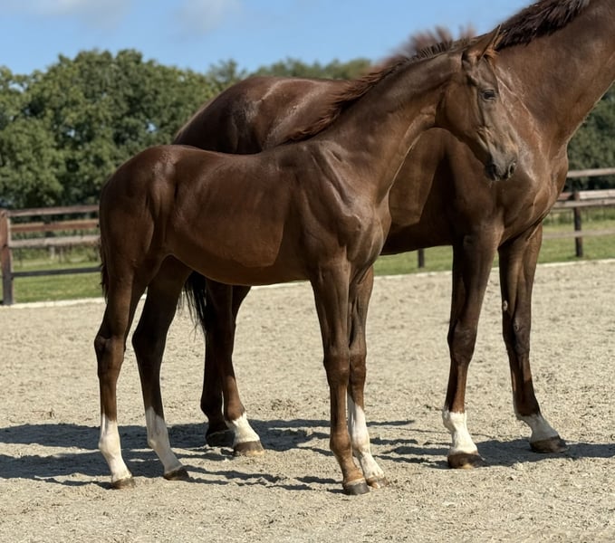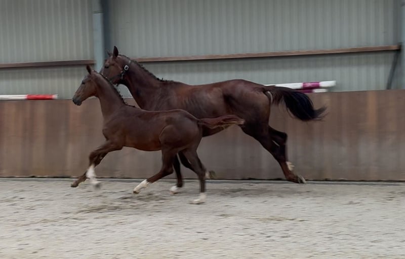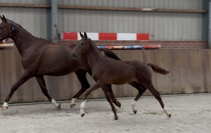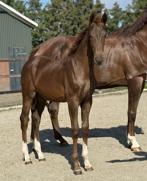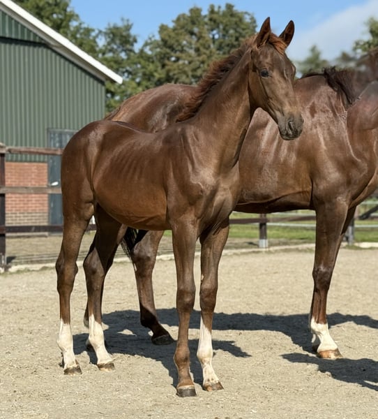 Ein besonders interessantes Stutfohlen mit Größe, Typ und Bewegung aus einer Top-Mutterlinie. 🌟 VUNORA MP 🌟 POWERBANK (For Ferrero) x All at Once x Jazz x Samba Hit x Farrington. Dieses wunderschöne Stutfohlen ist am kommenden Samstag während der Stal Brouwer Auktion in Delft zu verkaufen. Diese wird sowohl live als auch online verfolgt werden können. Vunora ist ein sehr ansprechendes und gut entwickeltes Stutfohlen. Sie verfügt über drei starke Grundgangarten, wobei ihr hervorragender Einsatz des Hinterbeins besonders auffällt. Nicht unwichtig, denn wir wissen, dass die Kraft von hinten kommen muss. Sie ist aus einer sehr interessanten Mutterlinie gezüchtet, aus der viele Sport- und gute Zuchtpferde hervorgehen. Ihre Großmutter ist GAGA sth. Als junges Pferd nahm diese Stute am Weltmeisterschafts-Dressurturnier teil und läuft mittlerweile erfolgreich auf PSG-Niveau in der Dressur. Der KWPN-Dressurhengstmeister 2025 ist „So Unique“. Er stammt von Vivino x Boston sth x Samba Hit ab und kommt somit aus derselben Mutterlinie wie dieses Fohlen. Auch der KWPN-zugelassene Prämienhengst Pablo Picasso (Glock’s Taminiau x Florencio x Farrington) stammt aus derselben starken Mutterlinie. 👉🏼 https://www.horsetelex.nl/horses/pedigree/2713848/vunora-mp Bei Interesse bitte anrufen oder eine Nachricht senden. +31(0)643197337 oder 0648271956