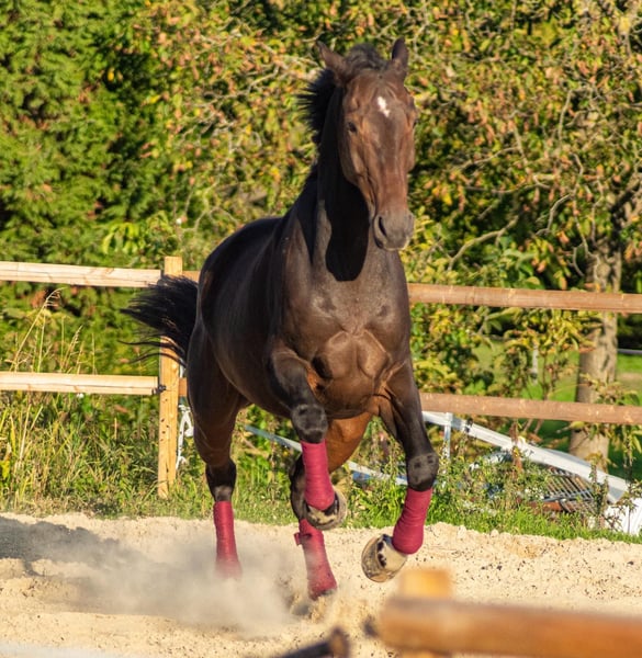 Caballo de doma / de volteo Yegua de 9 años, 1,73 m, con excelentes habilidades en la doma clásica. Se desplaza tranquilamente por el campo (¡incluso cerca de vacas!), es muy buena en trabajo en tierra (puede ser envuelta en una lona) y ¡le encanta acurrucarse! Es tranquila en la herrería y en el remolque, y muy dócil en su manejo. Conoce el pasto todo el día con otros caballos, pero también ha estado en la pradera con una yegua. La propietaria ya no puede montar tras un accidente. Ubicación: 51491 14.5 🥕
