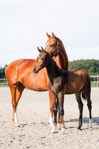 Handsome dark brown colt with a diamond-shaped collar, correct conformation, and light-footed movement available from November 1, 2025. Valeryo VS has been bred with an eye on dressage potential, possessing an honest and cooperative character, a physique suitable for collection, and correct gaits. Valeryo VS knows his foal ABC, has a curious character, and enjoys showing off. He readily absorbs new situations and experiences and learns willingly. For more information, please contact personally or via email. Video available upon request.