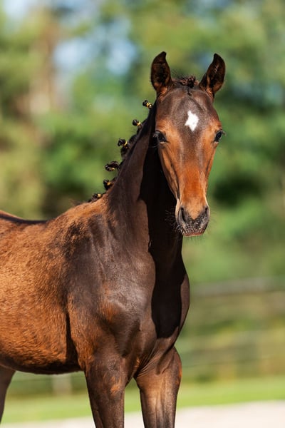 Knap dunkles braunes Hengstfohlen mit rautenförmigem Abzeichen, korrekter Bauweise und leichtfüßigem Gang ab dem 01.11.2025 verfügbar. Valeryo VS wurde mit Blick auf das Dressurpotential gezüchtet und hat einen ehrlichen, kooperativen Charakter sowie die Körperbau, um zu versammeln, mit korrektem Gangwerk. Valeryo VS kennt sein Fohlen-ABC, hat einen neugierigen Charakter und zeigt sich gerne. Neue Situationen und Erfahrungen nimmt er auf und lernt bereitwillig. Für weitere Informationen bitte persönlichen Kontakt oder E-Mail aufnehmen. Video auf Anfrage.