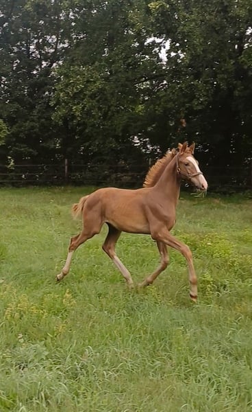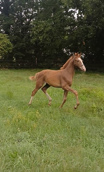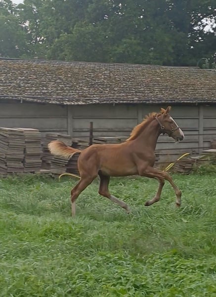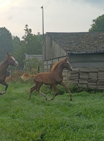 Volbeat UDP ist ein Kraftpaket, das sich mit viel Technik und Raum bewegt. Volbeat UDP ist ein Hengstfohlen von Opaque x Escolar x Houston. Vater Opaque ist noch jung und war damals Prämienhengst auf der Hengstschau, absolvierte anschließend eine gute Leistungsprüfung und gewann die 4-jährigen Kategorie bei der WM in Ermelo. Großvater Escolar hat internationale Grand Prix unter Hubertus Schmidt geritten und hat eine sehr gute Nachzucht. Auch Urgroßvater Houston hat mehrere Grand Prix-Pferde hervorgebracht. Volbeat UDP stammt aus der Lady-Reveil-Linie, in der Mutterlinie befinden sich mehrere Grand Prix-Pferde sowohl in der Dressur als auch im Springen. Auch mehrere gekörte Hengste. Es war geplant, Volbeats Mutter (v. Escolar) an der IBOP teilnehmen zu lassen, jedoch war sie aufgrund von Umständen bereits in fortgeschrittener Trächtigkeit, als sie in die Ausbildung ging, und aufgrund ihrer Größe (1,74 m) fehlte ihr die erforderliche Muskulatur. Daher haben wir beschlossen, sie zuerst zu Hause ihr Fohlen bekommen zu lassen, bevor wir mit dem Training fortfahren. Laut Jose van Haaren, bei dem sie in Ausbildung stand, ist dies eine sehr talentierte Stute.