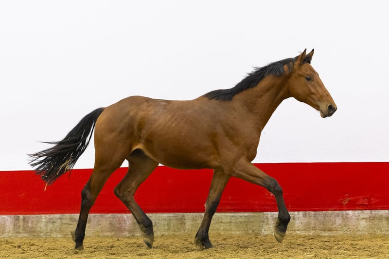 A beautiful, already well-developed and tall horse with a kind and easy character. He has an easy, balanced canter and shows quality in the trot. Besides his good gaits, he looks comfortable to ride in the future. Over the fences he shows scope and a correct technique, with balance and overview. A complete sport prospect combining quality and rideability.