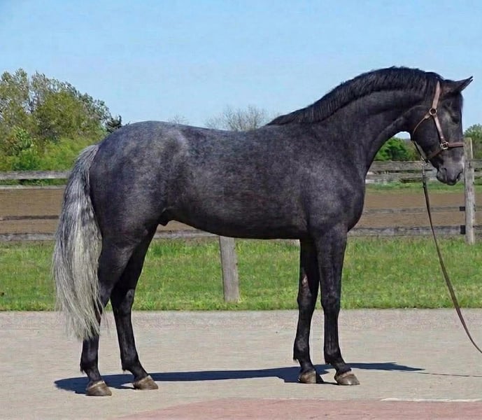 Magnifiquement construit, ce hongre KWPN de 3 ans possède une capacité de saut exceptionnelle et un mouvement expressif. De type moderne et athlétique, avec un cadre solide et un bon équilibre, il réunit toutes les qualités recherchées pour le sport et l’élevage futurs. Élevé pour la performance, il allie prudence, amplitude et une technique solide au saut. Son tempérament calme et facile en fait un cheval agréable à manipuler, adapté aussi bien à un programme professionnel qu’à un amateur ambitieux. Pedigree : Sire : Orak d’Hamwick (niveau 1,60 m) – Toulon × Tangelo van de Zuuthoeve Ligne maternelle : Chacco Blue – Chach Fly Un prospect très prometteur pour les disciplines de haut niveau et une option intéressante pour l’élevage grâce à ses lignées puissantes et sa conformation correcte. ✅ Calme et facile à gérer ✅ Potentiel sportif et reproducteur ✅ Peut être castré sur demande Un étalon vraiment exceptionnel, à la recherche d’un foyer extraordinaire. Pour vidéos, plus d’informations et prix, veuillez contacter via WhatsApp : +36 306392427