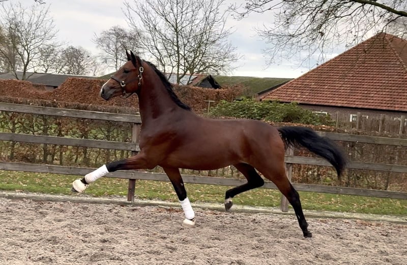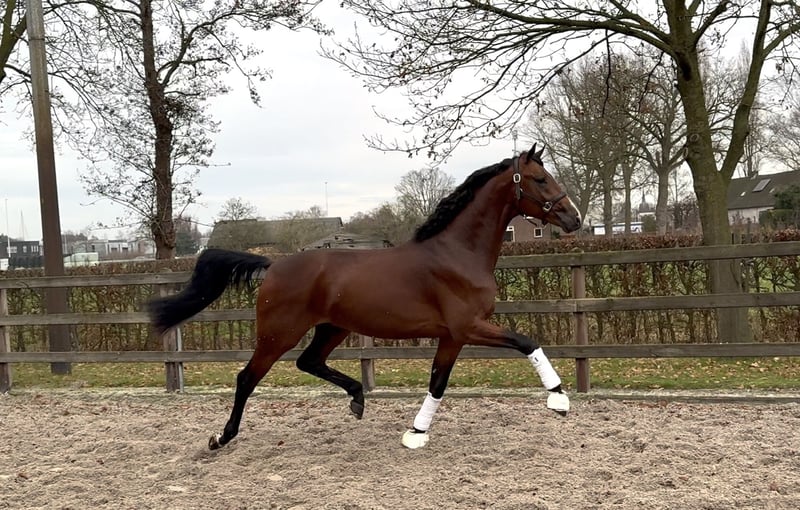 Bardzo utalentowany młody ogier KWPN do ujeżdżenia, od renomowanego hodowcy. Prawdziwy przyciągacz uwagi z efektem wow, o dużej charyzmie, z atrakcyjną głową i wyrazistym frontem. Prawidłowo zbudowany, z równymi kończynami i symetrycznymi kopytami. Porusza się na trzech fantastycznych chodach, bardzo lekko na nogach, z piękną techniką i dużym napędem w nogach. Silne tylne kończyny i doskonała równowaga. Pochodzi z bardzo dobrej linii matczynej, dwaj pełni bracia matki startowali odpowiednio na poziomie Grand Prix i Prix-st-georges. Ostatnio klinicznie i rentgenologicznie przebadany bez zastrzeżeń!