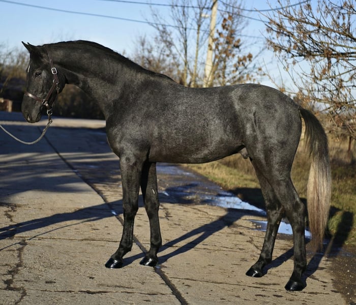 3-jähriger Hengst Seine erstklassige Abstammung und Qualität lassen jetzt schon auf eine gute Zukunft schließen. Beim Freispringen zeigt sich bereits sein Können, in guter Manier und gutem Überblick. Dazu kommen drei gute Grundgangarten. Ärztliche Untersuchung, inkl. Röntgenbilder können bei Bedarf eingesehen werden. Standort Ungarn Kontaktaufnahme per WhatsApp +36 20 248 7436