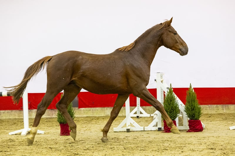 Sambuca is a big, athletic horse with blood and plenty of scope. He is quick off the ground, shows a good front-leg technique and jumps with a lot of ease. Over the fence he clearly displays scope and uses his hind leg good. Despite his size, he is light-footed and supple in his movement. The engine is on.. A horse with blood, but showing clear quality and potential for sport. Sire Emerald van ’t Ruytershof competed himself at 1.60 m Grand Prix level and won, among others, the World Cup Final in Gothenburg as well as major international classes in Bordeaux and Chantilly. He is one of today’s leading sires, producing numerous international top horses at 1.60–1.70 m level, including Imothep, Kasper van het Hellehof and Imerald van ’t Voorhof. Emerald is known for passing on scope, mentality and reflexes. The damline is exceptionally strong and deeply proven in sport. Dam Blackberry (by Larino) competed at 1.45 m level with international results. Granddam Vilotte (by Kannan GFE) also competed at 1.45 m and produced multiple sport horses. This damline includes an impressive list of international performers such as Elton John (1.50 m), Foxy W (1.45 m), Alan 111 Z (1.50 m), Accent Z (1.50 m), Hosanne ES (1.45 m), Little Gold ES (1.40 m) and Baby Lotte, who won at 1.60 m Grand Prix level in Hickstead and Barcelona. The family also produced several approved stallions, confirming its exceptional reliability. Sambuca brings together size, blood, technique and scope with a proven international performance pedigree, making him a very interesting prospect for the future.