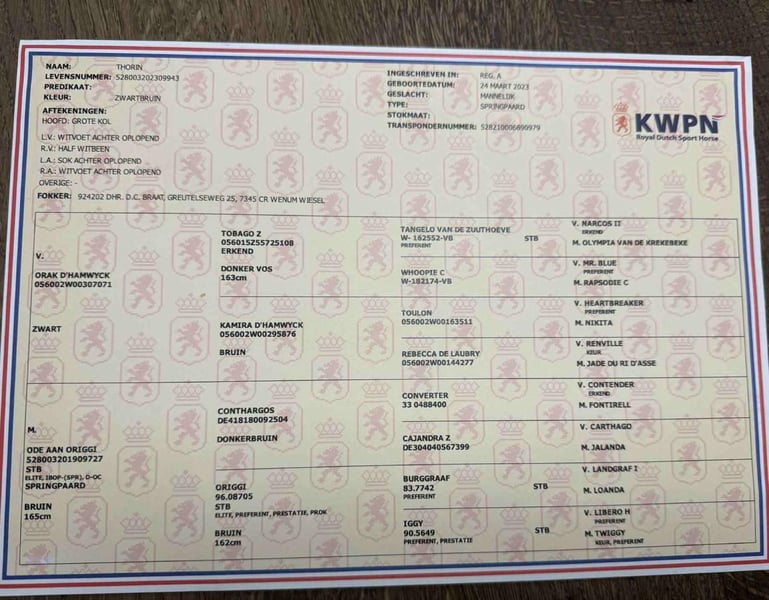 🔥 Top Youngster Stallion for International Show Jumping! Impressive 3-year-old black stallion, approximately 17.3 hh, with a modern type, powerful canter, and excellent temperament. A true eye-catcher with quality, talent, and great potential for advanced show jumping. His pedigree speaks for itself: Sire: ORAK D’HAMWYCK – by Tobago Z out of Kamira d’Hamwyck Dam: ODE AAN ORIGGI – by Conthargos out of Origgi Performance-driven international bloodlines combine here with modern athleticism and rideability. A diamond in the rough for ambitious riders and investors. ✅ 47 X-ray images available ✅ Correct conformation and age-appropriate development ✅ Very good work attitude ✅ Suitable for sport and, in the future, for breeding as well Worldwide transport possible – we reliably assist you with organization to any country. Further information, videos, and details gladly available upon request.