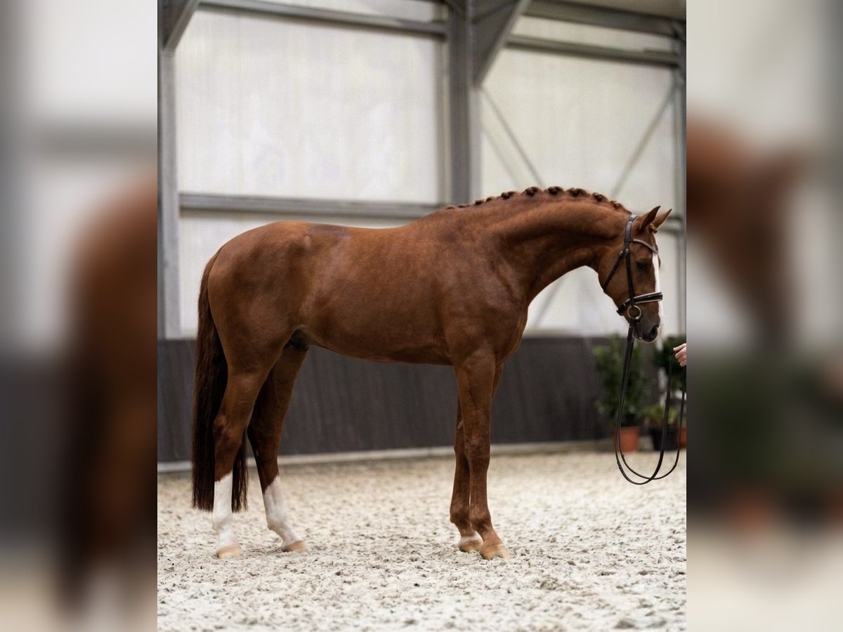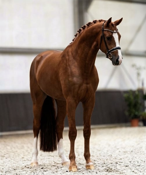 Hervorragender dreijähriger Fuchshengst zum Verkauf, der eine einzigartige Gelegenheit für den professionellen Sport und die Zucht bietet. Dieser junge Nachwuchshengst vereint weltklasse Genetik mit einem modernen, athletischen Körperbau. • Pedigree: Arezzo VDL (Chin Chin x Heartbreaker) x Quidam de Revel (Jalisco B) • Größe: ca. 173–174 cm (17.0 – 17.1 hh) • Gesundheit: Vollständig gesund mit aktuellen, sauberen Röntgenbildern (inklusive Beine, Hals und Rücken) • Fähigkeiten: Derzeit ungeritten (roh). Er zeigt eine außergewöhnliche Technik im Freispringen mit enormer Sprungkraft und Power. Seine Bewegung ist modern, leichtfüßig und ausgeglichen • Conformation & Charakter: Korrekte Konformation, eindrucksvolle Erscheinung und ein sehr freundliches, umgängliches Temperament Eine perfekte Wahl für professionelle Reiter, Deckstationen oder als hochwertige Investition in die Zukunft