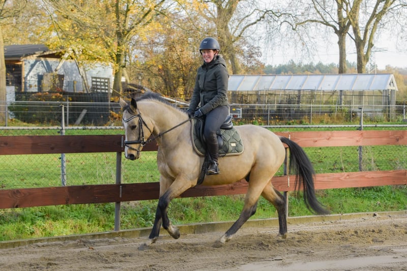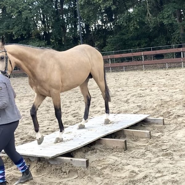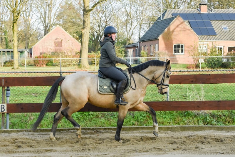 FEI PROSPECT / APPROVED STALLION! ⭐️ Heros is a 3,5 year old D-pony approved stallion / stud for breeding (and also sport), who measures 1.48m. With his beautiful buckskin color, he's a real eye-catcher! He has Zangersheide papers and his pedigree is: Hamlet x No Limit x Joost. His sire is the cremello stallion Hamlet, who is approved by the AES studbook. His dam's sire is the KWPN stallion No Limit, who jumped international at 1.60m level. No Limit has a jumping index of 150 with high reliability, placing him among the top performers. He is also known for his excellent offspring. No Limit is a offspring of the Preferent stallion Indoctro, who became the performance champion as a 3 years old. He also won the IAN Trophy in the 4 years old competition. At the age of 6, he competed in the World Championships for Young Show Jumpers in Lanaken, where he finished 6th. At 8 years old, he was already jumping at the 1.40/1.50m level, winning the Audi Cup and the stallion show jumping competition in Dortmund. Heros's dam line also includes the Holsteiner Preferent stallion Joost, who jumped at 1.50m. As you can see, Heros has a very beautiful and successful bloodline. https://www.horsetelex.nl/horses/pedigree/2630307/heros-by-esclinic-z Heros has incredibly good gaits! In the photos and video, we showed him jumping free for the very first time when he was only 2,5 years old (a year ago), jumping up to 1.20m straight away. He showed a very nice jump with a good back leg technique. We also saw that he really enjoyed jumping! Although he's an incredibly good jumper, we also expect that he will do good in dressage! He's a young, allround pony with plenty of potential. We have high expectations for him! Even though Heros is still young and a stallion, he's incredibly well-behaved and easy to handle! You wouldn't know he's still a stallion at all. He can also stay outside and on the stable next to the mares. He's very sociable with other horses. He knows how to groom/brush, lift legs, use a blanket, use a halter and of course, walk on a lead. We've also done some spook training with him. He'll easily walk past an umbrella, over a tarp, or even a wooden plank! We've now slowly started with making him saddle broken. He knows how to lunge with a bridle and saddle. He has been now under the saddle only a few times. He has also been on a strange arrea and has done his first jump under the saddle. He's doing it all good, but of course, he still has a lot to learn. He knew the trailer and little truck and is quietly on the road. He has no (stable) vices! He has clean X-RAYS for his neck, back, and legs without any remarks! He’s recently approved as an approved stallion by the EU-recognized RBP studbook. We already expect two foals from him next year and the mares where pregnant at the first time trying. A great opportunity for someone looking for a high quality, allround children's and sport/jumping pony or approved stallion for breeding. He's also interested for the international FEI competitions in the future. Of course, it's up to the new owners whether they leave him as a stallion or castrate him. € 11.500