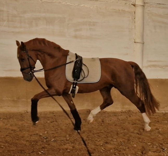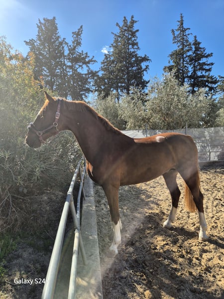 **For Sale: Amateur petite KWPN Stallion** Introducing a stunning KWPN stallion, born in 2021, who is sure to impress with his striking chestnut coat and elegant presence. Standing at a height of 160 cm, this young talent is poised to make his mark in the dressage arena. Ideal for riders that want to have a horse for life yet have no experience with young horses. Ronny is simple to deal with,has no stallion behavior and never disappoints. He is always happy being around people and horses and very kind in his reactions. This stallion is not only a beautiful horse but also possesses the athleticism and temperament necessary for success. Whether you are a competitive rider or looking for a promising young horse to develop, this KWPN stallion is ready to embark on his journey with you. Ronny has a full set of x rays including neck and back and no vices. Don’t miss the opportunity to own this remarkable horse. Contact us for more details and to arrange a viewing!