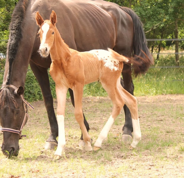 Disponible à la réservation : Poulain alezan capé KWPN par J-Nius V.V Z (Little Indian x Ugano Sitte x Chacco-Blue) et Britt, KWPN (Burggraaf x Phin Pin (Chin x Chin)). Devrait toiser environ 1m65/170. Très bien fait, grand et chic. Idéal pour projet sportif ou pour de l’élevage. Très gentil et proche de l’homme. Il sera disponible début 2026 à son sevrage vers 7/8 mois, manipulé, vermifugé, primovacciné. Visible en Dordogne proche Bergerac. Tarif : 8 000 € avec possibilité d'échelonner le paiement jusqu'au sevrage.