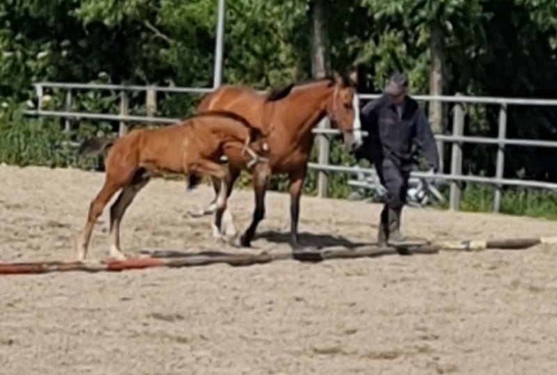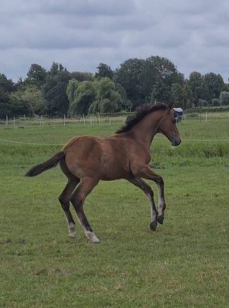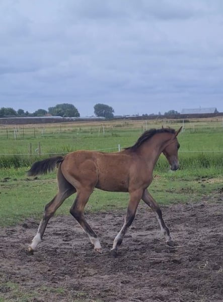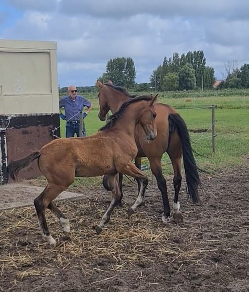 Athletisches Hengstfohlen zu verkaufen mit folgender Abstammung: Stargos VDL x Elite-Stute von Apardi x Cassini II. Die Mutter (1,70 m) hat erfolgreich die EPTM mit einem Durchschnitt von 8 bestanden und wurde anschließend für die Zucht eingesetzt. Dieses aktive, springbetonte Hengstfohlen hat drei sehr gute Grundgangarten und eine gute Beweglichkeit im Galopp. Es steht schön gerade auf den Beinen! Luxuriöser Kopf. Aufgrund der aktuellen Situation stehen Hengstfohlen zum Verkauf. Das Fohlen ist Mitte April geboren. Videos sind über WhatsApp verfügbar. Bei ernsthaftem Interesse bitte anrufen unter 0622488716. Das Pferd befindet sich in Voorhout, Südholland.