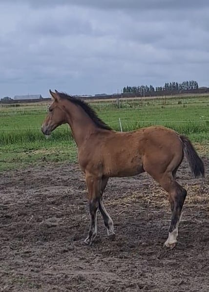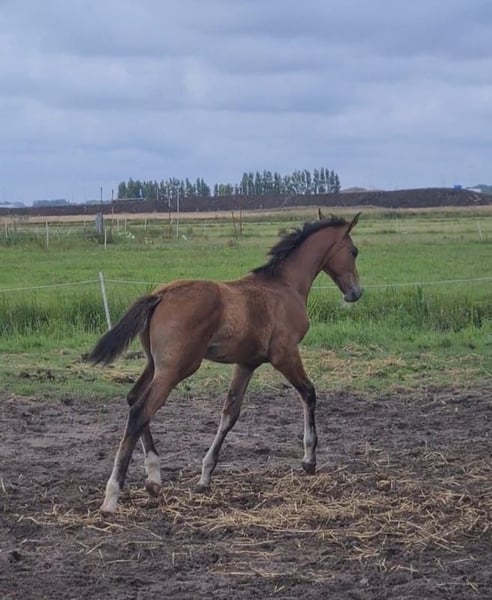 Atletisch hengstveulen te koop met de volgende afstamming: Stargos VDL x elite merrie van Apardi x Cassini II. Moeder (1.70) heeft zelf succesvol de EPTM behaald met gemiddeld een 8 en is daarna ingezet voor de fokkerij. Dit actieve springgefokte hengstveulen heeft 3 zeer goede basisgangen en goede souplesse in de galop. Staat mooi recht op de benen! Luxe hoofd. Ivm het niet aanhouden van hengstveulens te koop. Veulen is van half april. Video's beschikbaar via whatsapp. Bij serieuze interesse: 0622488716 paard staat in Voorhout ZH ENGLISH Athletic colt for sale with the following pedigree: Stargos VDL x Elite mare by Apardi x Cassini II. Dam (1.70 m) successfully achieved the EPTM with an average score of 8 and was subsequently used for breeding. This active, show jumping-bred colt has three excellent basic gaits and good suppleness in the canter. He has a beautiful, straight leg! Luxurious head. Due to the current situation, colts are for sale. The foal is due in mid-April. Videos available via WhatsApp. If seriously interested, please call 0622488716. The horse is located in Voorhout, South Holland.
