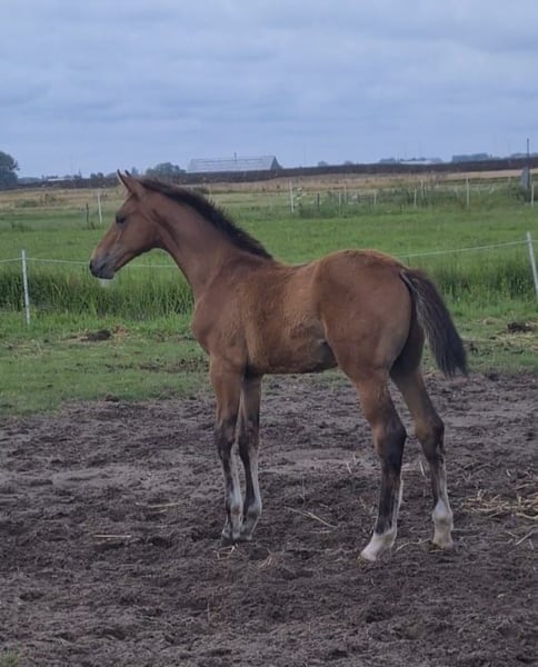 Athletic colt for sale with the following pedigree: Stargos VDL x elite mare by Apardi x Cassini II. Dam (1.70 m) successfully achieved the EPTM with an average score of 8 and was subsequently used for breeding. This active, show jumping-bred colt has three very good basic gaits and good suppleness in the canter. He stands beautifully straight on his legs! Luxurious head. Due to not keeping colts, he is for sale. The foal is from mid-April. Videos available via WhatsApp. For serious inquiries: 0622488716. The horse is located in Voorhout, ZH.