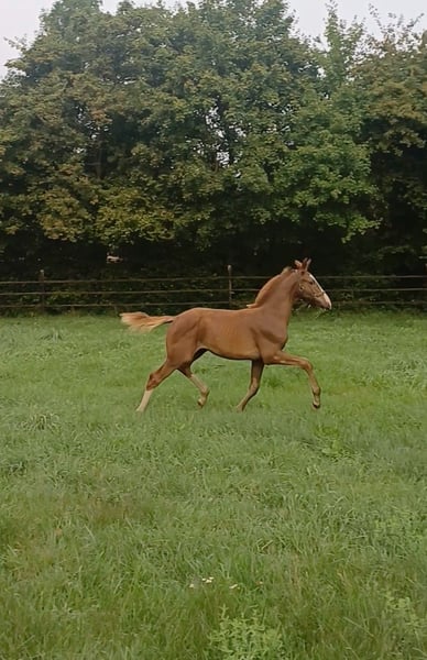 Volbeat UDP ist ein Kraftpaket, das sich mit viel Technik und Raum bewegt. Volbeat UDP ist ein Hengstfohlen von Opaque x Escolar x Houston. Vater Opaque ist noch jung und war damals Prämienhengst auf der Hengstschau, absolvierte anschließend eine gute Leistungsprüfung und gewann die 4-jährigen Kategorie bei der WM in Ermelo. Großvater Escolar hat internationale Grand Prix unter Hubertus Schmidt geritten und hat eine sehr gute Nachzucht. Auch Urgroßvater Houston hat mehrere Grand Prix-Pferde hervorgebracht. Volbeat UDP stammt aus der Lady-Reveil-Linie, in der Mutterlinie befinden sich mehrere Grand Prix-Pferde sowohl in der Dressur als auch im Springen. Auch mehrere gekörte Hengste. Es war geplant, Volbeats Mutter (v. Escolar) an der IBOP teilnehmen zu lassen, jedoch war sie aufgrund von Umständen bereits in fortgeschrittener Trächtigkeit, als sie in die Ausbildung ging, und aufgrund ihrer Größe (1,74 m) fehlte ihr die erforderliche Muskulatur. Daher haben wir beschlossen, sie zuerst zu Hause ihr Fohlen bekommen zu lassen, bevor wir mit dem Training fortfahren. Laut Jose van Haaren, bei dem sie in Ausbildung stand, ist dies eine sehr talentierte Stute.