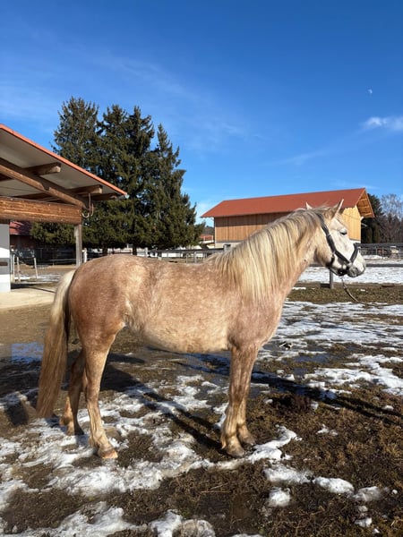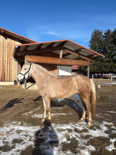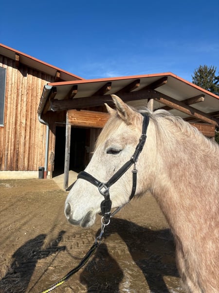 Zum Verkauf steht eine wunderschöne Leonharder Stute der F2-Generation, geboren im Jahr 2023. Sie ist ein echter Blickfang in ihrem eleganten Schimmel-Fell und überzeugt durch ihr freundliches Wesen. Mit einem aktuellen Stockmaß von 151 cm ist sie ideal für Freizeitaktivitäten geeignet und zeigt sich vielseitig talentiert. Elegance ist neugierig, gutmütig und verschmust. Sie liebt es geputzt sowie gekrault zu werden und ist bei der Arbeit immer klar im Kopf. Die junge Stute wächst im Herdenverband auf und kennt Hufschmied sowie Tierarzt. Mit ihrem angenehmen Temperament wartet sie nun auf eine neue Familie, die sie liebevoll fördert und fordert. Der Leonharder ist bekannt für seine robuste Konstitution, seine vielseitigen Einsatzmöglichkeiten und sein freundliches Wesen. Mit ihrer charmanten Ausstrahlung und ihrem angenehmen Charakter ist diese Stute eine echte Bereicherung für den Freizeitbereich. Bei Interesse oder für weitere Informationen stehe ich gerne zur Verfügung. Eine Besichtigung und Kennenlernen der Stute ist nach Absprache möglich.