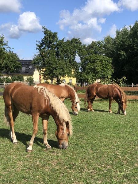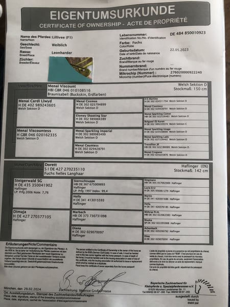 Verkaufe Leonharder Stute – Geburtsjahr 2023 Zum Verkauf steht unsere wunderschöne Leonharder Stute (f1), geboren im Jahr 2023. Dieses charmante Fuchsstütchen besticht durch ihr freundliches Wesen und ihre sportliche Erscheinung. Mit einem Stockmaß von 153 cm eignet sie sich hervorragend für den Dressursport und begeistert durch ihre Bewegungsqualität und Lernbereitschaft. Bisher macht ihr bereits Boden- und Freiarbeit große Freude. Schweren Herzens darf sie nun in ein neues Wohlfühl-Zuhause ziehen wo sie mit Bedacht und Liebe gefördert und gefordert wird, eine treue Begleiterin im vielseitigen Pferdesport zu werden. Sie ist auf jeden Fall Ideal für ambitionierte Reiter, die eine talentierte und vielversprechende Nachwuchsstute suchen. Sie wäre dank ihrer guten Abstammung auch sehr gut geeignet um die Zucht der noch jungen Pferderasse Leonharder fortzuführen. Auf dem Letzten Foto ist ihr Vater zu sehen. Bei Interesse oder für weitere Informationen stehe ich gerne zur Verfügung.
