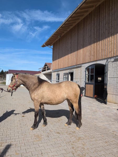 We are offering a beautiful Leonharder mare, born in 2023. She has an elegant dun coloration and is expected to reach an approximate height of 15.8 hh. She is ideally suited for leisure activities. The young lady impresses with her friendly nature and willingness to learn.