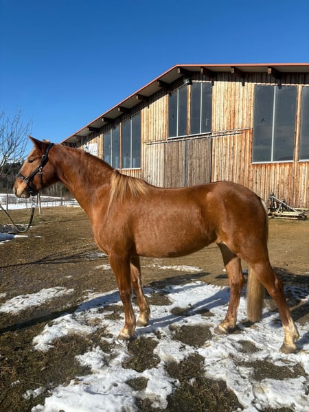 For sale is a stunning Leonharder mare from the F2 generation, born in 2022. She impresses with her elegant chestnut coat and friendly demeanor. With a height of 151 cm, she is ideally suited for leisure riding and demonstrates versatile talent. This charming chestnut mare is perfect for riders seeking a reliable and pleasant horse for recreational activities. Zadorina lives in a herd and is regularly introduced to the farrier. She was gently backed about three months ago and is familiar with the basics. She rides confidently alone in the terrain and also enjoys her time in the indoor arena. Zaforina is a talented jumper and captivates with her curious, sweet, brave, and calm nature. If interested or for further information, please feel free to contact me. A personal meeting is highly recommended!