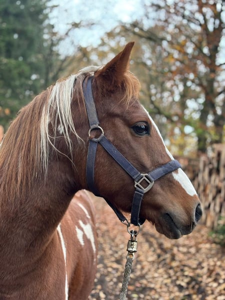 Gigolo ist ein wunderschöner, 9-jähriger Lewitzerwallach, der mit seinem typischen Schecken-Charme und seiner liebevollen Art, sofort Herzen gewinnt. Er überzeugt mit ausdrucksstarken, schwungvollen Gängen und einem ehrlichen Charakter. Er ist meist sehr leistungsbereit durch viel Energie und Motivation unter dem Reiter. Aktuell ist er nur bedingt reitbar, da er in den letzten Wochen wenig gearbeitet wurde. Die Lebensumstände haben sich drastisch verändert, so dass wir ihm zeitlich nicht mehr gerecht werden können und uns nun schweren Herzens von ihm trennen müssen. Mit regelmäßigem Training wird er aber schnell wieder in seine alte Form finden - er ist sehr lernwillig und möchte immer gefallen. Er ist sicher im Schritt, Trab und Galopp - sowohl mit als auch ohne Sattel routinierter Einsatz in Reithalle, Reitplatz, Springplatz und Gelände möglich. Seitengänge, Schulterherein und Vorhandwendungen sicher abrufbar. Sehr artig im Gelände - bei neuen Umgebungen anfangs aber etwas unsicher. Kleine Sprünge hat er mit Reiter absolviert und erfolgreich im Freispringen teilgenommen. Gigolo kennt Kühe und Rehe problemlos, beim Thema Hängerfahren ist er jedoch noch nicht erfahren. Er war bisher ein- bis zweimal auf dem Anhänger, ist aber noch nie richtig gefahren bzw. vollständig eingestiegen. Hier braucht er eine geduldige, klare Anleitung. Gigolo ist ein echtes Herzenspferd : verschmust, Menschen bezogen und mit viel Charme. Typisch Pony ist er sehr verfressen, arbeitet aber motiviert mit und möchte vieles richtig machen. Allerdings ist er nicht für jeden geeignet – er ist kein Anfängerpferd, da er sensibel ist und über viel Power verfügt. Er braucht einen Menschen, der ihm vertrauen und Sicherheit gibt, dann ist er ein absoluter Partner fürs Leben. Der Verkauf erfolgt inklusive kompletter Ausrüstung (Bundeswehrschrank , Sattel, Trense, Decken, Halfter etc.), da der Reitsport vollständig aufgegeben wird. Gigolo ist ideal für jemanden, der ein verlässliches Freizeitpony sucht, das mit Vertrauen, Liebe und regelmäßigem Training sein volles Potenzial zeigen kann.