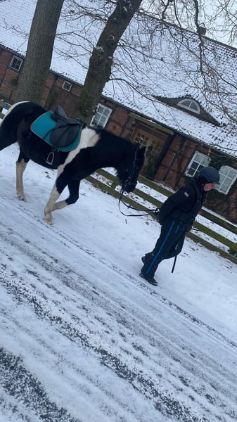 Freundicher Lewitzer Mix sucht seinen Herzensmenschen. Hektor ist ein stabil gebauter, aufgeweckter Kumpeltyp, der mit einem Stockmaß von etwa 1,45m auch Erwachsene noch gut abdeckt. Mit seinen 11 Jahren, ist er im besten Alter um mit seinem neuen Besitzer noch viel zu erleben. Im Umgang zeigt sich Hektor freundlich und interessiert und ist von nichts leicht aus der Ruhe zu bringen. Beim Tierarzt und Hufschmied ist er brav und auch in der Herde ist er unauffällig, spielt gerne und zeigt sich sehr sozial. Im Gelände ist Hektor sehr mutig und hat ein eher gemäßigtes Temperament. Zu zweit oder in der Gruppe kann er sicherlich auch ein gut reitendes Kind/ Jungendlichen sehr glücklich machen. Um alleine auszureiten bedarf es vom Hof weg noch ein bisschen Überzeugungsarbeit, daran wird aktuell gearbeitet. Auf dem Platz ist Hektor eher faul und unmotiviert. Er stammt aus einem Kinderreitbetrieb und muss erst wieder Spaß an der Arbeit finden. In Hektor schlummert ein Herz aus Gold, das nach einem Menschen sucht, der ihn an die Hand nimmt und ihm zeigt, das man zusammen ganz viele schöne Dinge erleben kann. Kein fertiges Pferd zum durchstarten aber ein ungeschliffener Rohdiamant der mit etwas Arbeit zu einem tollen Freizeit Kumpel wird. Aktuell befindet sich Hektor bei mit (Pferdewirtschaftsmeister) in Beritt und kann auch hier noch weiter ausgebildet werden. Gerne begleite ich den neuen Besitzer auch auf seinem Weg mit Unterricht und/ oder Beritt.