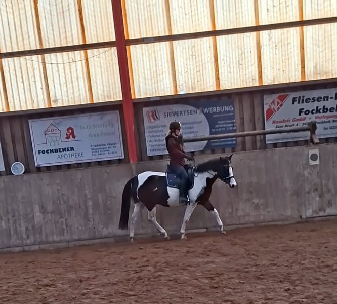 Mit schweren Herzen muss ich wegen Familierer Veränderung für mein Pony ein neues 5 Sterne Zuhause suchen . Shadow ist ein 7 jähriger vielseitiger Lewitzer Wallach mit einem Stockmaß von ca 145 cm , deckt durch seinen Körperbau sehr gut ab und wirkt deutlich größer . Ich bin selber 164 cm groß. Er ist ein absoluter Herzensbrecher und sucht die Nähe & Kontakt zum Menschen , ist immer freundlich, neugierig und zugewant . Auch wenn er , wenn es um seine Möhrchen geht etwas gierig werden kann 🥰 Auf der Koppel kommt er einem mit einem freundlichen grummeln entgegen . Steht entspannt beim putzen , sattels ect. Wenn es nach ihm geht will er gerne stundenlang geputzt und betüddelt werden. Er ist für jeden Spaß zu haben und kennt Schrecktraining mit Planen, Flatterband ect. Auch Strand, Geländepark , Stoppelfeld und Turnierplatz sind keine Fremtwörter für ihn . Er ist als Turnierpony eingetragen Er wird bei mir abwechslungsreich gearbeitet das heißt reiten auf dem Platz / Halle , Eqikenetic, Trail , Stangenarbeid aber auch ausreiten gehören zu seinem alltäglichen training. Auch kennt er es am Kinderwagen zu laufen. Ich reite ihn hauptsächlich freizeitmäßig in der Dressur,hier geht er auf solidem E/ A niv. Er macht aber auch über dem Sprung eine gute Figur und es macht ihm auch deutlich Spaß. Mit der Vorbesitzerin war er auch bereits auf Geländeturnieren unterwechs. Er ist eher der gemütliche Typ , als ein Rennsemmel aber keinesfalls triebig. Meine 6 jährige Tochter reiten alle 3 Grundgangarten an der Longe auf ihm. Er steht bei uns in einer großen Gemischten Herde mit ca 20 Pferden . Im Sommer 24/7 auf Koppel und im Winter Nachts in der Box . Im Sozialverhalten zeigt er sich auch hier freundlich und zugewand, stress geht er aus dem Weg. Er wurde immer regelmäßig entwurmt , beim Zahnarzt, Osteopath und beim Schmied vorstellt wo er brav steht und alle vier Hufe brav gibt. Er war nie Krank und hat auch keine Vorerkrankungen. Natürlich kann eine AKU auf Kosten des Käufers durchgeführt werden. Er besitzt einen Pass und ist 100 % verladesicher . Was ich mir für ihn wünschen würde wäre ein Zuhause bei liebevollen Menschen mit Pferdeverstand die ihn weiter fördern und ausbilden , denn mit seinen 7 jahren ist er noch lange nicht am Ende seiner Ausbinderildung . Shadow wird mit seinem Zubehör abgegeben Videos können bei ernsthaften interesse gerne versendet werden.
