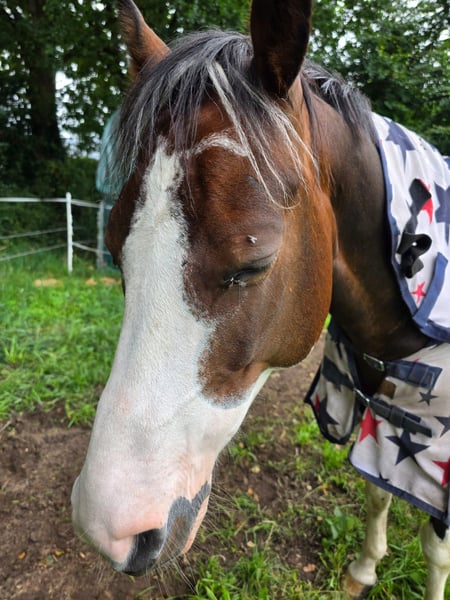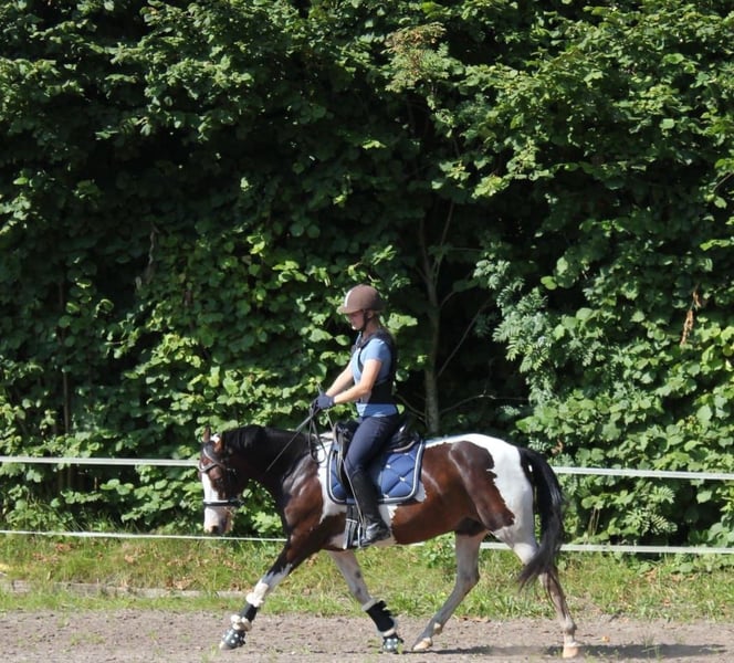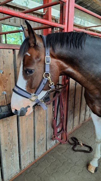 With a heavy heart, I am now looking for a new 5-star home for my pony due to family changes. Shadow is a versatile 7-year-old Lewitzer gelding with an approximate height of 14.5 hands. His build covers a lot of ground and makes him appear much larger. I am 5'4" myself. He is an absolute heartbreaker and seeks closeness and contact with people. Always friendly, curious, and affectionate. Although he can become a bit eager when it comes to his carrots 🥰. In the pasture, he greets you with a friendly nicker. He stands relaxed during grooming, tacking up, etc. If it were up to him, he would love to be groomed and pampered for hours. He is up for any fun and is familiar with scare training using tarps, flutter tapes, etc. The beach, cross-country, open fields, and showgrounds are all familiar environments for him. He is registered as a show pony. His training is varied, including riding in the arena/indoor, groundwork, trail riding, pole work, and also hacking out is part of his daily routine. He is also used to walking alongside a stroller. I mainly ride him for leisure in dressage, where he performs solidly at E/A level. He also jumps well and clearly enjoys it. He has previously competed in cross-country events with his former owner. He is more of a relaxed type rather than a speedster, but he is by no means sluggish. My 6-year-old daughter can ride all three gaits on him at the lunge line. He is kept with a large mixed herd of about 20 horses. In summer, he is turned out 24/7, and in winter, he stays in his box at night. His social behavior is friendly and affectionate, and he avoids stress. He has been regularly dewormed, and has been seen by the dentist, osteopath, and farrier, all of whom report him to be well-behaved and cooperative, giving all four hooves willingly. He has never been ill and has no pre-existing conditions. A veterinary health check can be arranged at the buyer’s expense. He possesses a passport and is 100% load-safe. What I wish for him is a home with loving people who understand horses, who will continue to support and develop him, as at 7 years old, he is far from finished with his training. Shadow will be sold with his tack and accessories. Videos can be sent upon serious interest.
