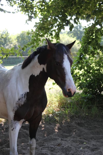 Met pijn in het hart zoek ik wegens familiale veranderingen een nieuw vijfsterren thuis voor mijn pony. Shadow is een veelzijdige zevenjarige Lewitzer ruin met een stokmaat van ongeveer 145 cm, die door zijn bouw zeer goed dekt en er duidelijk groter uitziet. Ik ben zelf 1,64 m groot. Hij is een echte hartendief en zoekt graag nabijheid en contact met mensen. Hij is altijd vriendelijk, nieuwsgierig en aanhankelijk. Ook kan hij, als het om zijn worteltjes gaat, wel eens gretig worden 🥰. Op de paddock komt hij je met een vriendelijke brom tegemoet. Hij staat ontspannen tijdens het poetsen, zadelpassen, etc. Volgens hem wil hij graag urenlang verzorgd en geknuffeld worden. Hij is voor ieder plezier te hebben en kent schriktraining met zeilen, fladderbanden, etc. Ook strand, buitenritten, stoppelen en dressuurwedstrijdterreinen zijn geen onbekende omgevingen voor hem. Hij is geregistreerd als dressuurpony. Bij mij wordt hij veelzijdig getraind: dressuur op de piste/hal, gymnastic, trail, cavaletti werk, maar ook buitenritten maken deel uit van zijn dagelijkse training. Hij kent ook het meelopen naast een kinderwagen. Ik rijd hem vooral recreatief in de dressuur, hier beweegt hij op E/A-niveau. Hij doet ook goed mee over de sprong en vindt dat duidelijk leuk. Met zijn vorige eigenaar heeft hij ook al meegedaan aan buitenritten en wedstrijden in het terrein. Hij is meer een relaxte type dan een renpaard, maar zeker niet dronken. Mijn 6-jarige dochter longeert hem in alle drie de basisgangen. Hij staat bij ons in een grote gemengde kudde van ongeveer 20 paarden. In de zomer altijd op de wei, ’s nachts in de stal in de winter. Zijn sociaal gedrag is vriendelijk en aanhankelijk; stress vermijdt hij. Hij is altijd regelmatig ontwormd, werd bij de tandarts, osteopaat en hoefsmid voorgesteld, waar hij geduldig staat en alle vier de hoeven netjes geeft. Hij is nooit ziek geweest en heeft geen eerdere aandoeningen. Een gezondheidsverklaring (AKU) kan op kosten van de koper worden uitgevoerd. Hij beschikt over een paspoort en is 100% verplaatsingsveilig. Wat ik voor hem wens, is een liefdevol thuis bij mensen met paardenkennis die hem verder willen begeleiden en opleiden, want met zijn zeven jaar is hij nog lang niet aan het einde van zijn opleiding. Shadow wordt inclusief zijn uitrusting verkocht. Bij serieuze interesse kunnen video’s worden gestuurd.