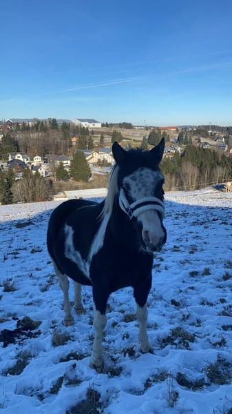 Lewitzer Wallach „Blue“ Noch 8 Jahre jung, 137,5cm Stockmaß, barhuf und in allen Gangarten reitbar, sowohl im Gelände als auch in der Reithalle/-platz, sowohl gebisslos als auch mit Gebissen. Gehalten wird er in der Weidesaison 24/7 auf der Koppel und im Winter über Nacht in der Box. In letzter Zeit wurde er nicht mehr viel bewegt, auf Grund der Erkrankung der Besitzerin und ist dementsprechend ziemlich temperamentvoll. Wenn man ihn jedoch richtig fördert und fordert ist er ein toller Partner. Deswegen nicht unbedingt direkt für Kinder oder Anfänger geeignet. Seine Besitzerin möchte ihn verkaufen, da sie ihm krankheitsbedingt nicht mehr gerecht werden kann. Er wird zusammen mit Sattel und Zubehör verkauft.