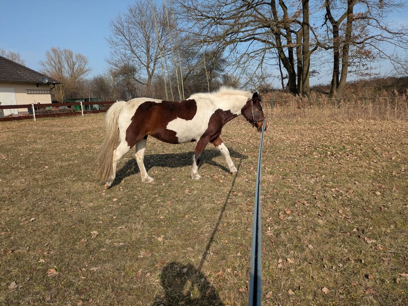 Lewitzer Stute „Bailey“ – zuverlässiges Freizeitpferd mit großem Herz Schweren Herzens suche ich für meine Lewitzer Stute Bailey ein neues, liebevolles Zuhause. Da ich ihr zeitlich leider nicht mehr gerecht werden kann, wünsche ich mir für sie einen Platz bei Menschen, die ihr die Aufmerksamkeit und Beschäftigung geben können, die sie verdient. Zu Bailey: Lewitzer Stute 12 Jahre alt Braunschecke Stockmaß ca. 138 cm Bailey ist ein absolutes Verlasspferd im Gelände. Sie ist unerschrocken, nervenstark und geht nicht durch – auch wenn sie mal ein paar Tage stand. Gleichzeitig ist sie sehr menschenbezogen und baut eine enge Bindung zu ihrer Bezugsperson auf. Sie möchte gefallen und arbeitet gern mit ihrem Menschen zusammen. Sie deckt kleinere Erwachsene bis etwa 60 kg gut ab. Die letzte Reitbeteiligung war 15 Jahre alt, was sehr gut funktioniert hat. Bailey möchte regelmäßig beschäftigt werden und freut sich über Menschen, die gern Zeit mit ihrem Pferd verbringen – sei es beim Reiten, Spazieren gehen oder Bodenarbeit. Wichtig: Kein Pferd für kleine Kinder. Bailey sucht eine feste Bezugsperson und einen ruhigen, verantwortungsvollen Umgang. Durch meinen Unfall wurde sie seit etwa 3 Monaten nicht gearbeitet, war davor aber regelmäßig im Einsatz. Sie steht ganzjährig im Offenstall mit paddocktrail und im Sommer stundenweise auf der Weide. Platz vor Preis – sie wird nur in allerbeste Hände abgegeben. Bei ernsthaftem Interesse freue ich mich über eine Nachricht und erzähle gern mehr über Bailey.