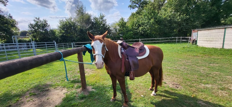 Je suis heureux de vous aider avec la traduction. Voici la version en français, adaptée pour une annonce sur ehorses : --- Je peux envoyer des photos, mais le téléchargement ne fonctionne pas pour le moment... Ma douce jument Lewitzer, très proche de l’homme, nommée Eisfee (appelée affectueusement Letty), cherche une nouvelle famille. Elle a 18 ans et mesure 1,39 m. Elle était autrefois attelée (je n’ai jamais essayé) et a eu en 2019 un magnifique poulain stallion. Elle est inscrite au stud-book I. Malheureusement, je ne connais pas beaucoup plus de détails sur son passé. Je l’ai récupérée il y a environ un an et demi, avec l’idée de la former en cheval de selle. Pour cela, j’ai fait appel à une entraîneuse, et nous avons beaucoup travaillé en liberté et en longe. Elle connaît le poids du cavalier et porte bien son cavalier au pas lorsqu’elle est menée. Dès que la personne qui la mène s’éloigne, elle devient un peu plus hésitante. Elle devrait devenir un poney western, car selon moi, elle est plus adaptée à une manière de monter décontractée. Dès qu’on prend les rênes, elle se ferme un peu. Malheureusement, je dois reconnaître que nous ne sommes pas faits pour nous entendre, car je ne suis pas la plus sûre d’elle-même. De plus, je suis devenue trop lourde pour elle. Si quelqu’un lui donne la sécurité dont elle a besoin, tout cela peut certainement bien fonctionner. En liberté, c’est une perle et elle suit à chaque pas. Avec des instructions claires, le travail en liberté se passe aussi très bien. Je pourrais aussi l’envisager pour la reproduction. C’est une ponette formidable, que tout le monde aime. Elle est calme chez le maréchal (elle va pieds nus), chez le vétérinaire et lors du chargement. Rien à signaler. Ses dents ont été récemment traitées en septembre, et la vermifugation a eu lieu la semaine dernière. Nous avons également commencé une osteopathie cet été, sans aucune particularité négative. Elle présente actuellement une légère boiterie due à une élongation, mais celle-ci est déjà presque guérie. Je ne la confie qu’avec un contrat de protection, à des personnes de confiance. Elle souhaite également un box en paddock. Priorité à la place, pas au prix. --- Wenn Sie noch Anpassungen wünschen, lassen Sie es mich gerne wissen!