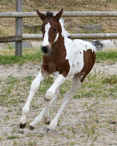 Nandino is a textbook-perfect Lewitzer, beautifully built with a stunning face and a temperament that couldn't be more desirable. Very calm and cool, yet with good movement and easy to handle. He already knows the basics of foal training and loves being fussed over. His sire, Guardian Star, is a performance stallion who, like his sire Greenhorn (FN Federal Premium and Elite Stallion), received the highest possible score of 10.0 for temperament and sociability. Nandino's dam, Ruby, is a premium mare and ZfdP Federal Champion Mare, descending from the elite and performance stallion Shawan. She is also a full sister to the Federal Champion and performance stallion Smaragd. Nandino boasts an excellent pedigree, which is clearly reflected in his quality and character. He would make a wonderful leisure pony for children and adults alike, with the potential for sporting ambitions as well.