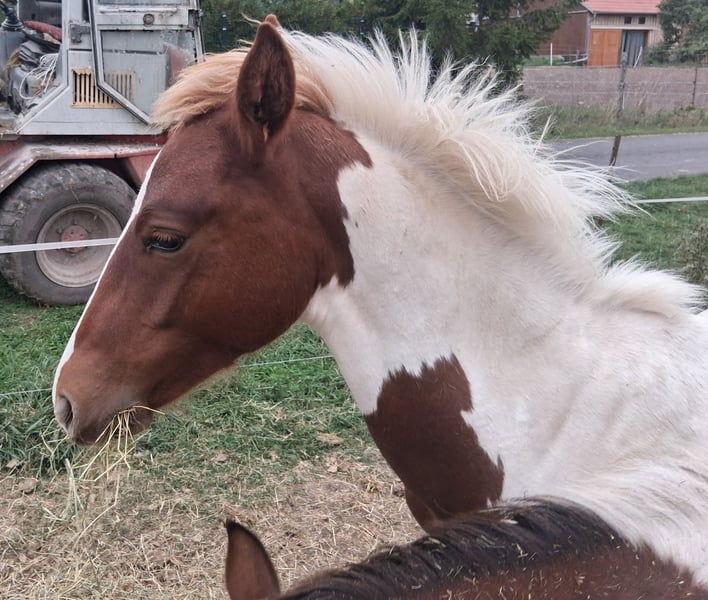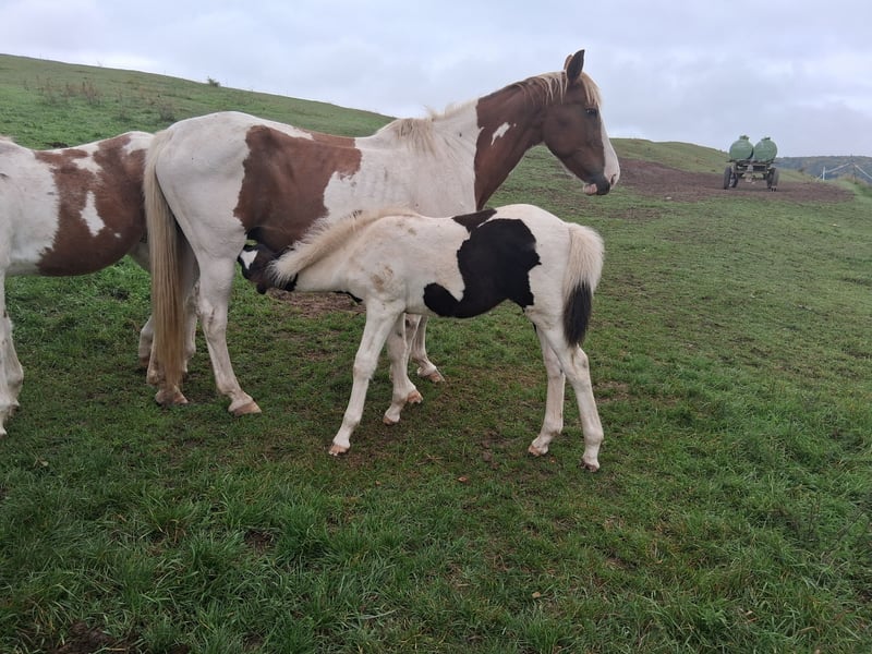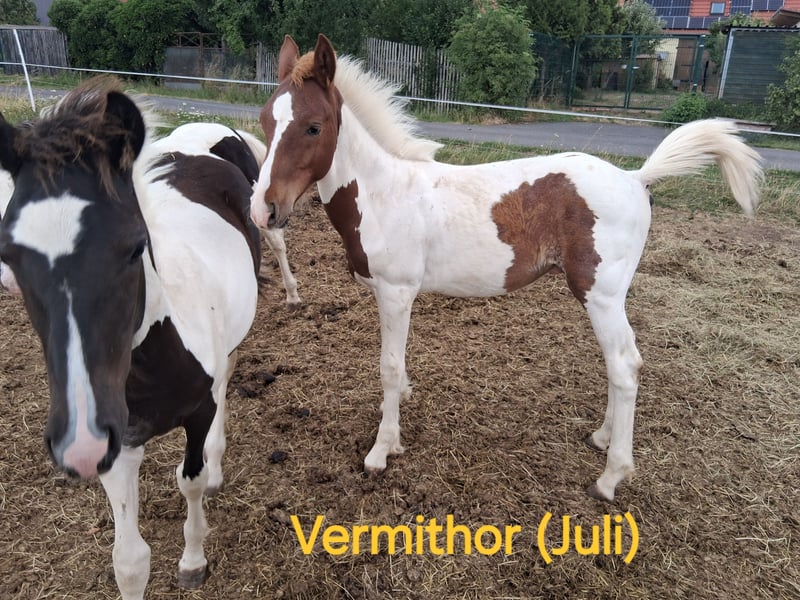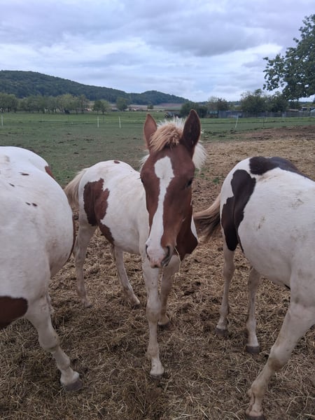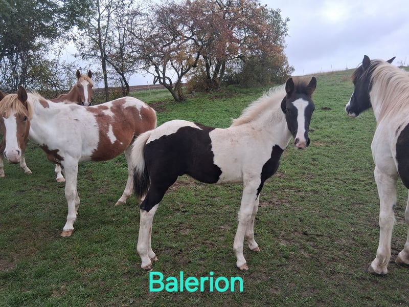 Vermithor (kurz Thor) – Braunscheck, geb. März 2025 Vermithor ist ein aufgeschlossenes und zutrauliches Hengstfohlen, das Menschenkontakt nicht scheut. Er zeigt sich neugierig, freundlich und lernwillig. Wir schätzen sein späteres Endmaß auf ca. 1,55 m. Er wächst in Herdenhaltung zusammen mit Stuten und anderen Fohlen auf. Balerion – Schwarzscheck, geb. Juni 2025 Balerion ist ein hübscher, harmonisch gebauter Jungspund, der aktuell noch relativ naturbelassen auf der Weide aufwächst. Menschenkontakt kennt er bisher weniger, zeigt aber bereits vorsichtige Neugier. Über seinen Charakter lässt sich momentan noch nicht viel sagen, allerdings zeichnen sich seine Geschwister durch ein sehr freundliches, nervenstarkes und anfängerfreundliches Wesen aus. Sein geschätztes Endmaß liegt bei ca. 1,65 m. (Bilder sind teilweise schon etwas älter, bei Interesse können gerne aktuelle Bilder gemacht werden)