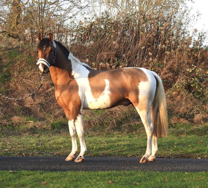 ❗️Due to the high volume of inquiries, we kindly ask for contact via phone only.❗️ For sale is a 2.5-year-old Lewitzer pony with a current height of approximately 1.38 meters. The pony was successfully presented to the licensing committee last week and comes from reputable breeding. He has a wonderfully gentle character and has always been groomed and led by children. He was kept in a paddock with other stallions and geldings until recently. The pony is easy to handle, loads calmly, and is already familiar with bridle and lunge line from the licensing preparation. We will not send videos of our horses without prior phone contact, so please refrain from requests like "please send a video." Viewings are possible at any time. For further questions, please feel free to call us at 0171 530 33 40. All rights to the images belong to Sport- und Freizeitpferde Wilfried Oestersandforth. Distribution or publication is strictly prohibited.