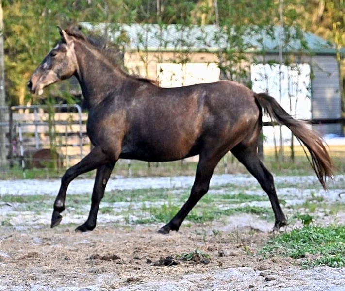 Lipizzaner-Mischstute mit Blue Roan Gen, Quarter Horse. Wird im Dezember 3 Jahre alt, bereits eingeritten. Sehr willig und möchte gefallen. Für jede Disziplin geeignet. Kommt im Feld direkt zu einem, ist leicht zu handhaben, arbeitet gerne und ist vielseitig einsetzbar. Hervorragende Blutlinien für die Zucht.