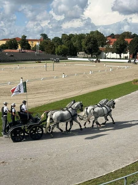Meet Trompeta – Elegant Young Lipizzan Mare Meet Trompeta, a stunning young Lipizzan mare with a strong pedigree and a lovely temperament. She is basically educated, well-behaved, and ready to continue her training journey. This year, Trompeta made her first public appearance at the 2025 Lipica Stud Farm Days, where she participated in a four-in-hand driving team and proved herself as an excellent and reliable working horse. She is very self-confident, not spooky, and shows a steady character in different environments. With her outstanding bloodlines and conformation, Trompeta is also suitable for breeding, making her a valuable addition to any quality breeding program. This elegant mare shows promising potential for dressage or classical riding and is a true pleasure to handle every day.