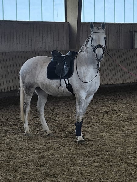 Für meine Stute suche ich ein passendes neues zu Hause, weil sie in unserem kleinen Laufstall daheim nicht ganz glücklich ist. Sie harmoniert nicht optimal mit meinem anderen beiden kleinen Stuten und auch ich selber bin momentan etwas eingeschränkt in meinen Möglichkeiten. Trotz ihrer Größe bringt die Stute sämtliche typischen Merkmale eines Lipizzaners mit: große Arbeitsfreude, tolle Gänge, sie ist sehr menschenbezogen verschmust und klug. Wenn man ihr die entsprechende Sicherheit gibt, ist sie unglaublich cool und trotzdem feinfühlig. Ich habe sie vierjährig vor zwei Jahren direkt aus dem Gestüt Sambata de Jos bekommen. Sie war schon sattelfest und ich glaube auch eingefahren. Die nächsten drei Monate wurde sie nach klassischen Grundsätzen gearbeitet. Bei mir daheim stehend haben wir sie zu Ausritten und Pferdeparaden mitgenommen, hier ist sie auch mega entspannt. Zur weiteren Ausbildung steht sie jetzt wieder in Überlingen in einem sehr renommierten Stall ( langjährige Lusitanozucht, Ausbildung nach Prof Dr Stodulka, Franklin etc) Ich wünsche mir für sie einen Platz wo sie klare Strukturen und faire Führung bekommt. Durch ihre Größe und Körperstruktur ist sie ideal für für einen größeren Menschen , der gerne von dem unglaublichen Potential eines Lipizzaners profitieren möchte. Denkbar wäre neben der klassischen Dressur auch als Kutschpferd oder in der Working Equitation ( für diesen Zweck hatte ich sie ursprünglich angeschafft) Schmied, Wurmkur, Impfung, Zähne, alles aktuell. Gerne gebe ich auf Anfrage weitere Informationen sowie Bilder.