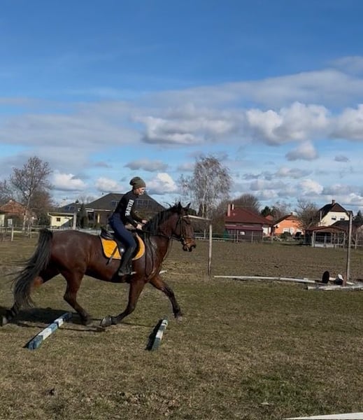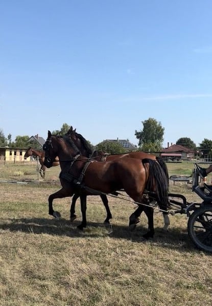 7-jährige braune Stute (geb. 22.06.2019) mit sehr guter Abstammung. Stockmaß ca. 165 cm. ✅ angeritten (Gelände & Platz) ✅ brav im Umgang ✅ verträglich mit anderen Pferden ✅ gibt die Hufe gut ✅ problemlos putzen, anbinden und führen ✅ regelmäßig entwurmt und geimpft ✅ beim Hufschmied vorgestellt ✅ zweispännig gefahren ✅ Fahr-Ausbildung begonnen (noch in Arbeit) Aufgrund ihres jungen Alters steht sie noch in weiterer Ausbildung und benötigt unter dem Sattel einen erfahrenen Reiter. Sie ist nicht für Anfänger geeignet. Bei regelmäßiger Arbeit zeigt sie sich motiviert und lernwillig. Aufgrund von Zeitmangel und fehlender Auslastung zu verkaufen. 📍 Standort: Ungarn (bei Győr) 💰 Preis: 5000 € (VB) Weitere Fotos und Videos sende ich gerne auf Anfrage.