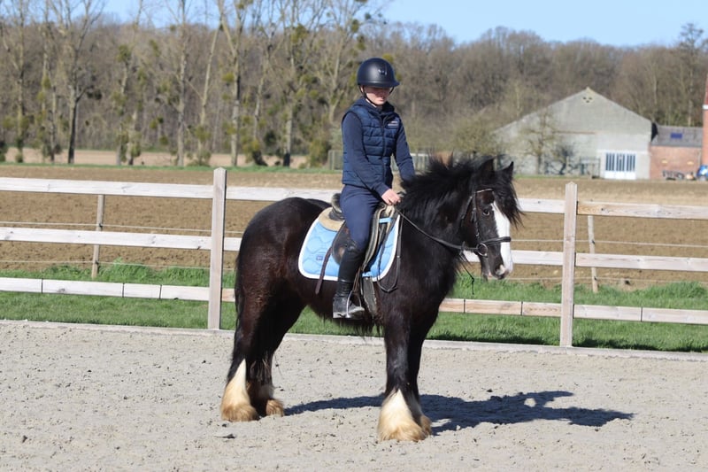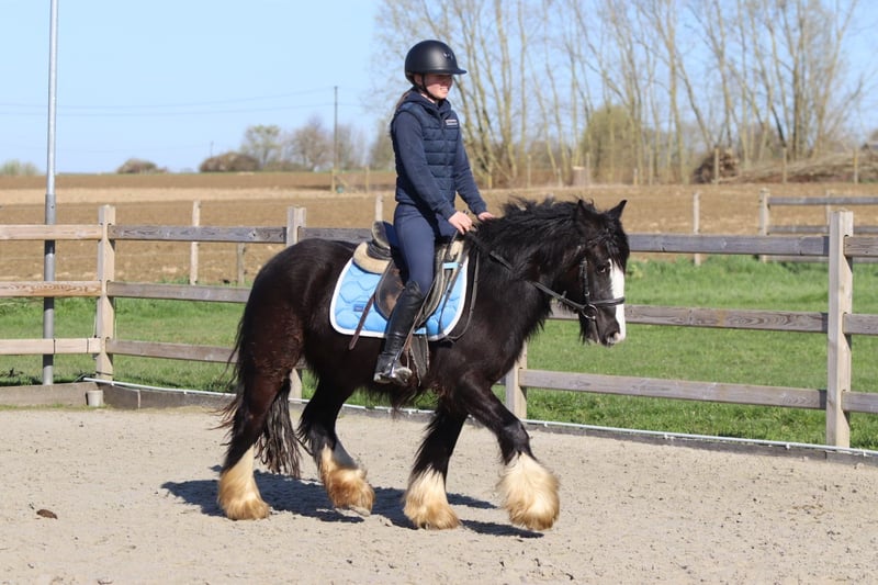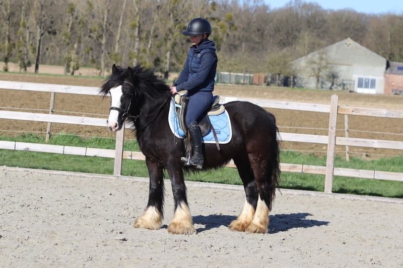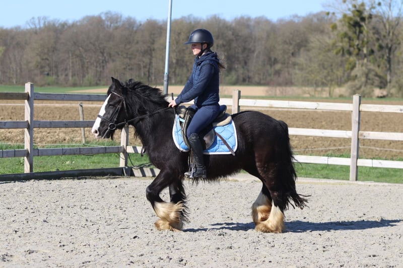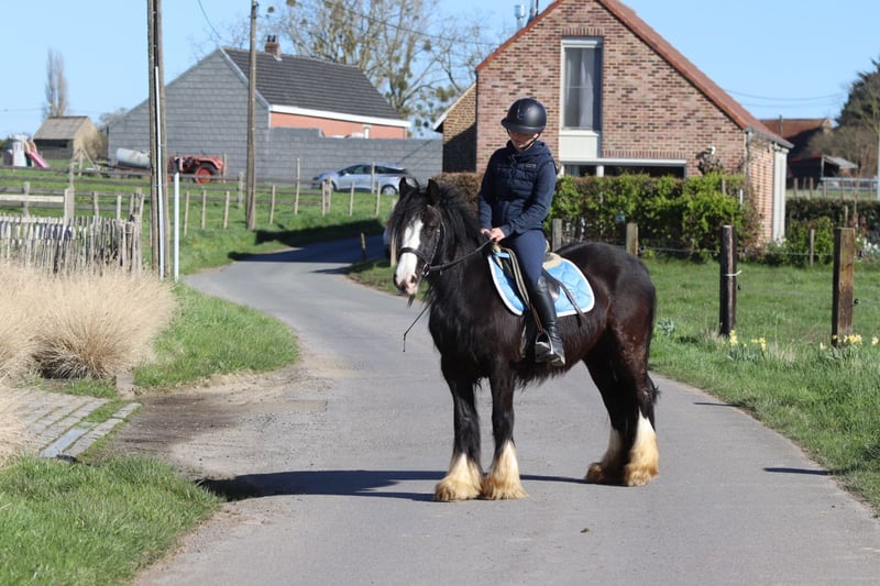 Dolly ist eine wunderschöne, tiefschwarze Tinker-Stute im Alter von 4 Jahren und etwa 1,33 m groß. Sie besitzt eine schöne, kräftige Konstitution und ist ein echter Blickfang. Im Umgang ist Dolly eine liebevolle und ruhige Ponystute, die gut an der Hand liegt. Sie kennt die drei Grundgangarten ordentlich und ist angenehm zu reiten. Sie wird nicht bocken oder unnötig beschleunigen, was sie unter dem Sattel zuverlässig macht. Dolly unternimmt auch gern Ausritte, sowohl alleine als auch in der Gruppe, und bleibt dabei brav und entspannt. Außerdem kommt sie gut mit anderen Ponys aus. Gerne springt sie auch einmal. Kurz gesagt, eine angenehme und zuverlässige Ponystute mit einem goldenen Charakter. Weitere Infos? 0032 475 68 22 43 Für Videos besuchen Sie bitte unsere Webseite.