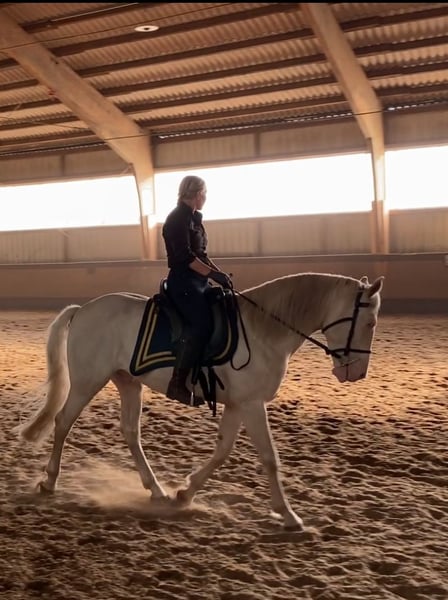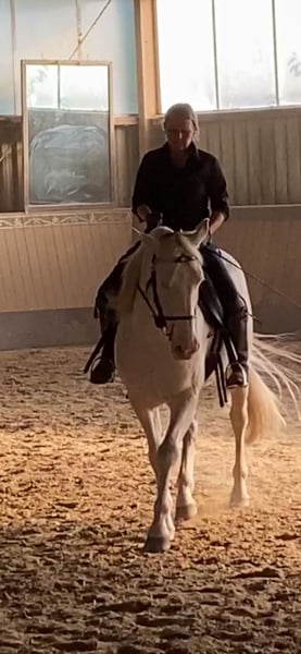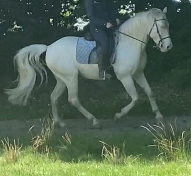 Zuverlässiger, entspannter Lusitano sucht neuen Wirkungskreis. . Aramis ist in allen Grundgangarten geritten und beherrscht alle Seitengäng sowie Rückwärtsrichten. Kurze Tritte, Aussengalopp und spanischer Schritt vom Boden angefangen.Erste Erhebungen auf der Hinterhand. Er ist Verladefromm, Schmiedefromm, und brav im Umgang. Für Ausritte super geeignet. Geht gerne und zuverlässig im Gelände. Für Anfänger und Kinder nicht geeignet. Besser für ambitionierte Freizeitreiter, fortgeschrittene Reiter, Akademiker ,Dressurreiter , Reitkunst, Showreiter , Working Equtation o Springen. Pferd möchte arbeiten und gefördert werden, ist aber dabei ruhig , zuverlässig und entspannt in der Arbeit und flitzt nicht davon . Auch im Umgang ist er eher entspannt und ruhig . . Sensibler, lernbereiter , Aufmerksamer Lusitano. Sein Charakter ist ehrlich, stolz, zurückhaltend, majestätisch., gutmütig Dieses Pferd hat in seinem Leben keine schlechten Erfahrungen gemacht, kann aber trotzdem Hengstig und misstrauisch reagieren. Typischer Lusitano Charakter.