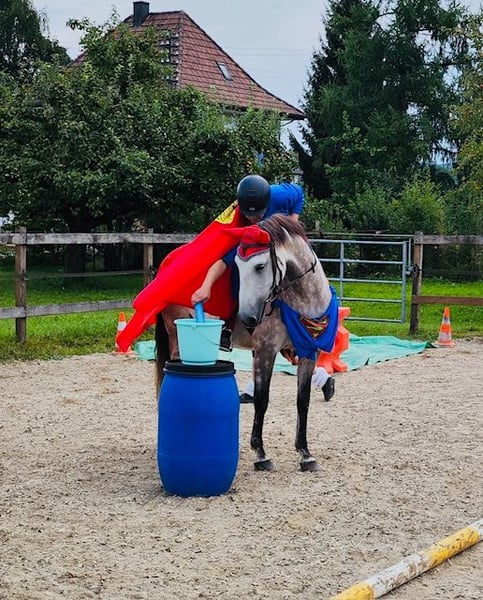 Ich suche für meinen wundervollen Wallach Jango ein neues Zuhause. Dieser Schritt fällt mir alles andere als leicht, doch ich werde ihm zeitlich nicht mehr gerecht. Er wird nur abgegeben, wenn wirklich alles passt und er seinen Menschen fürs Leben findet. Jango ist ein 12-jähriger Lusitano Wallach, ca. 1,55m gross und seit sieben Jahre an meiner Seite. Er wurde erst mit fünf Jahren schonend angeritten und durfte sich in seinem eigenen Tempo entwickeln. Er ist ein sensibles, introvertiertes Pferd mit einem grossen Herzen. Wer ihm Sicherheit und Klarheit schenkt, bekommt einen unglaublich loyalen Partner, der stets bemüht ist, alles richtig zu machen. Jango möchte gefallen, ist verspielt, denkt mit und baut eine tiefe Bindung zu „seinem“ Menschen auf. Ob Patrouillenritte, Horse Agility, Freispringen, Reiten mit der Garrocha oder Freiarbeit. Jango ist mit Freude und Motivation dabei. Er liebt es, gemeinsam Zeit zu verbringen und Neues zu lernen. Natürlich geht er auch zuverlässig alleine oder in der Gruppe ins Gelände. Er hat einen angenehmen Vorwärtsdrang. Mit Kindern ist er geduldig und vorsichtig, dennoch soll er kein reines Kinderpferd werden. Er braucht eine erwachsene Bezugsperson, die ihm Sicherheit gibt. Als Familienpferd ist er durch sein liebevolles Wesen jedoch bestens geeignet. Das mag er weniger: - Hängerverladen erfordert etwas Feingefühl (Fahren ist problemlos) - Spritzen - Nasses, kaltes Wetter – hier schätzt er eine Decke Jango ist gesund, hat regelmässige Zahnkontrolle, sowie Physio/Osteo. Divereses Equipment bringt Jango mit (Sattel von Deuber und Partner, El Campo) Ich wünsche mir für Jango einen Platz, an dem er gesehen wird, ankommen darf und als Partner geschätzt wird – bei einem Menschen, der ihm Zeit, Aufmerksamkeit und ganz viel Liebe schenkt.