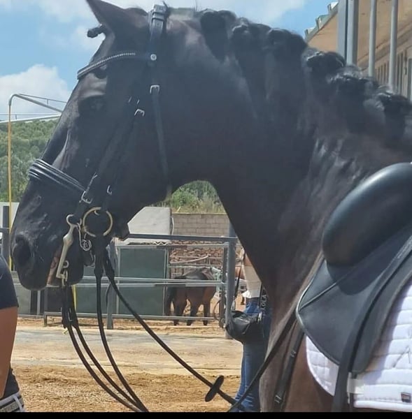 On behalf of the client: This stunning dressage stallion is now available for sale! Chocolate has competed successfully at Inter I level and can demonstrate several placings. As soon as he enters the arena, he truly shines in his element! He is fearless and always eager to perform. Naturally, he also enjoys long rides in the countryside. Chocolate is the ideal partner for the discerning rider seeking a lifelong equine companion. His temperament is friendly and open-minded. He comes with an equine passport but without pedigree documentation. He has been kept in the best possible conditions and is handled with great care. Location: Spain – worldwide transport can be arranged.
