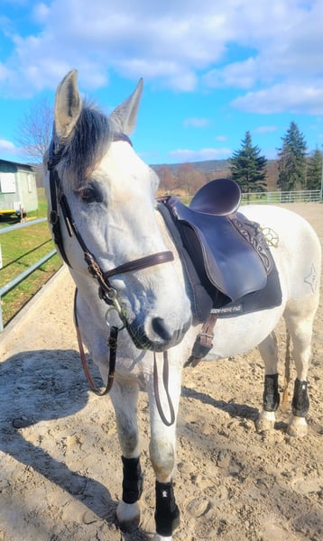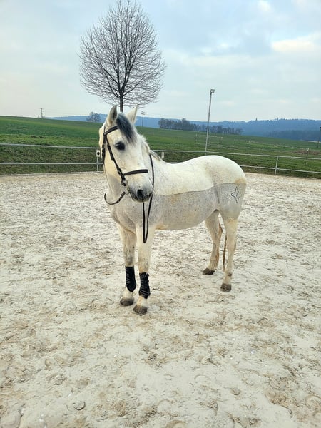 Name: Rayo Breed: Lusitano Mix Age: 19 years Height: 15.5 hh Gender: Gelding Rayo is an absolute heart horse – sensitive, reliable, and resilient. He is very people-oriented, always eager to please, and works with great joy alongside his rider. He has been ridden mainly for leisure. We regularly had riding and groundwork sessions in the riding arena. He is also regularly handled on the ground. Lunging, including with a double lunge, is part of his training. He enjoys hacking out – both alone and in a group. He remains calm and brave outdoors, with no issues crossing water or exhibiting any bad habits. He has also been introduced to some classical dressage exercises. He is accustomed to working with children, showing particular patience and gentleness in such interactions. Naturally, he is loading well into the trailer and is farrier-friendly. Rayo previously suffered from a suspensory ligament injury; he is currently sound and back in training. He still needs to be built up gradually, but I am confident that with the right training, he will be fully fit again. He has a mild sweet itch, which we manage well without blanketing. Rayo needs age-appropriate promotion and challenges. He is especially motivated when working on varied exercises such as pole work, ground driving, lunging, or equikinetic. My wish is for Rayo to find a lifelong home where he receives lots of attention and care. An open stable or a box with daily turnout would be ideal. I am looking for people who will lovingly support him and attend to his needs. It is with a heavy heart that I have to part with him for personal reasons. I am happy to share more details privately. Rayo is a true heart horse with a unique character, giving so much back to his person. I hope to find someone who will love him as much as I do. All tack and equipment can be included if desired. Place before price.