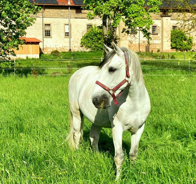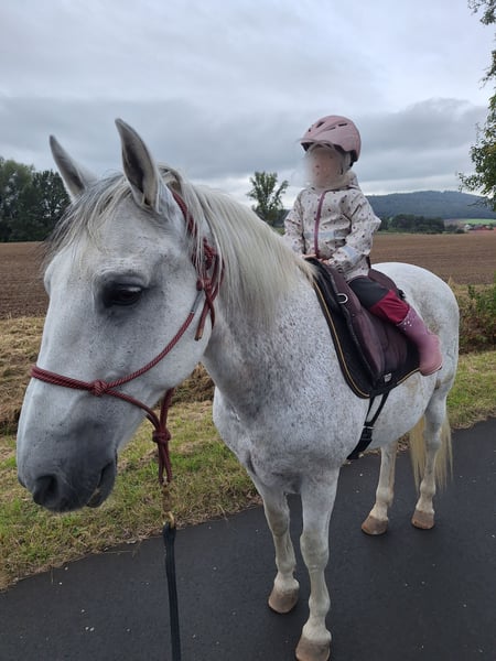 Name: Rayo Rasse: Lusitano Mix Alter: 19 Jahre Größe: 155cm Geschlecht: Wallach Rayo ist ein absolutes Herzenspferd – sensibel, zuverlässig und nervenstark. Er ist sehr menschenbezogen, möchte immer gefallen und arbeitet mit viel Freude mit seinem Reiter zusammen. Rayo ist freizeitmäßig geritten. Wir hatten regelmäßig Reit- und Bodenarbeitsstunden auf dem Reitplatz. Er wird regelmäßig an der Hand gearbeitet. Longieren, auch mit Doppellonge, gehört ebenfalls dazu. Er geht gerne ins Gelände – sowohl alleine als auch in der Gruppe. Hier ist er nervenstark und mutig. Kein Durchgehen oder sonstige unarten. Ein paar zirzensische Lektionen hat er ebenfalls kennengelernt. Er kennt den Umgang mit Kindern, ist hier besonders vorsichtig und nachsichtig. Natürlich ist er verlade- und schmiedefromm. Rayo hatte eine Fesselträgerentzündung, ist aktuell lahmfrei und wieder im Training. Er muss noch weiter aufgebaut werden aber ich bin zuversichtlich, dass er mit dem richtigen Training wieder komplett fit werden wird. Er hat ein leichtes Sommerekzem, welches wir ohne eindecken gut im Griff haben. Rayo möchte altersgerecht gefördert und gefordert werden und ist vorallem bei abwechslungsreicher Arbeit (Stangen, Fahren vom Boden, Doppellonge, Equikinetic) motiviert bei der Arbeit dabei. Ich wünsche mir für Rayo einen Platz auf Lebenszeit, an dem er viel Zuwendung bekommt. Ideal wäre ein Offenstall oder eine Box mit täglichem Auslauf. Menschen, die ihn liebevoll fördern und auf seine Bedürfnisse eingehen. Schweren Herzens muss ich mich aus persönlichen Gründen von ihm trennen. Privat dazu gerne mehr Informationen. Rayo ist ein echtes Herzenspferd mit einmaligen Charakter, das seinem Menschen viel zurückgibt. Ich wünsche mir für ihn jemanden, der ihn ebenso ins Herz schließt, wie ich es getan habe. Das komplette Zubehör kann gerne mit übernommen werden. Platz vor Preis.